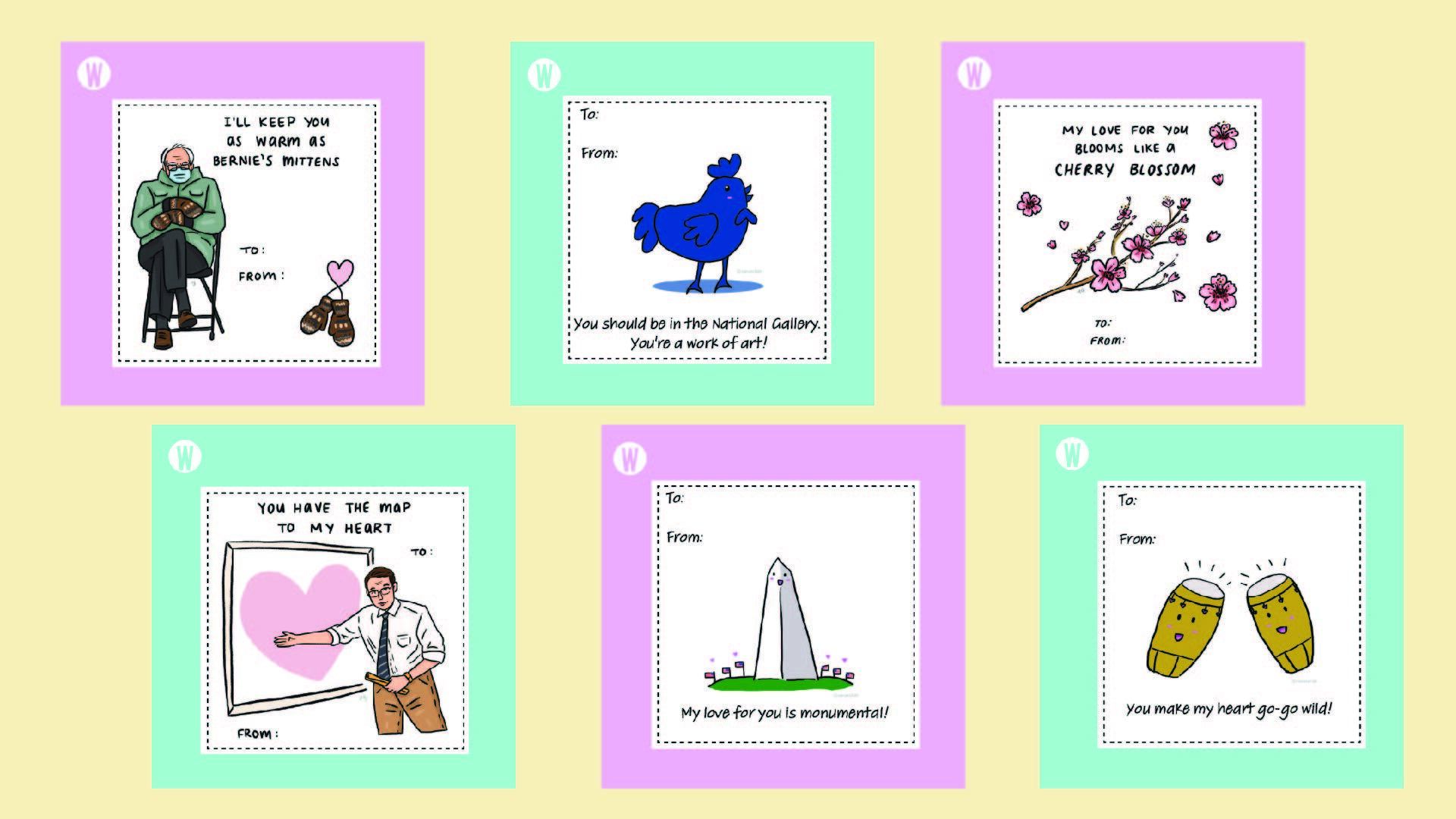 What do we love more than this city, along with its quirks, inside jokes, and relentless ability to meme political events? Even if you can’t be together, send your loved ones some DC-themed cards to brighten their Valentine’s Day.