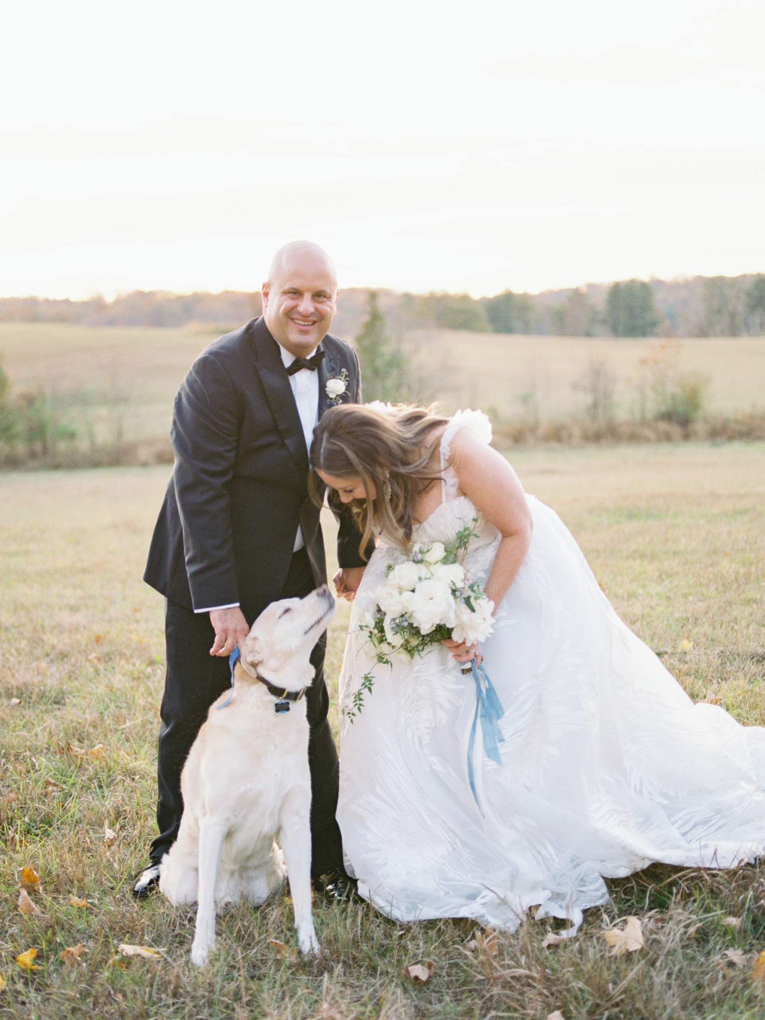Rebecca, owner of an online boutique, and Mike, a medical sales specialist, met the new-fashioned way: online. In their 40s and having never married before, the pair say, it was truly a fairytale “so worth the wait.” Two weeks after they pair got engaged, Mike was diagnosed with a very aggressive cancer, which, their photographer says, led the pair through a lot of soul-searching and support for one another. And eight months later, they said, “I do.” On November 9, 2019, they tied the knot in front of 100 people at the Airlie in Warrenton, Virginia. See the details of their wedding, inspired a collection of Blue Willow china, below.