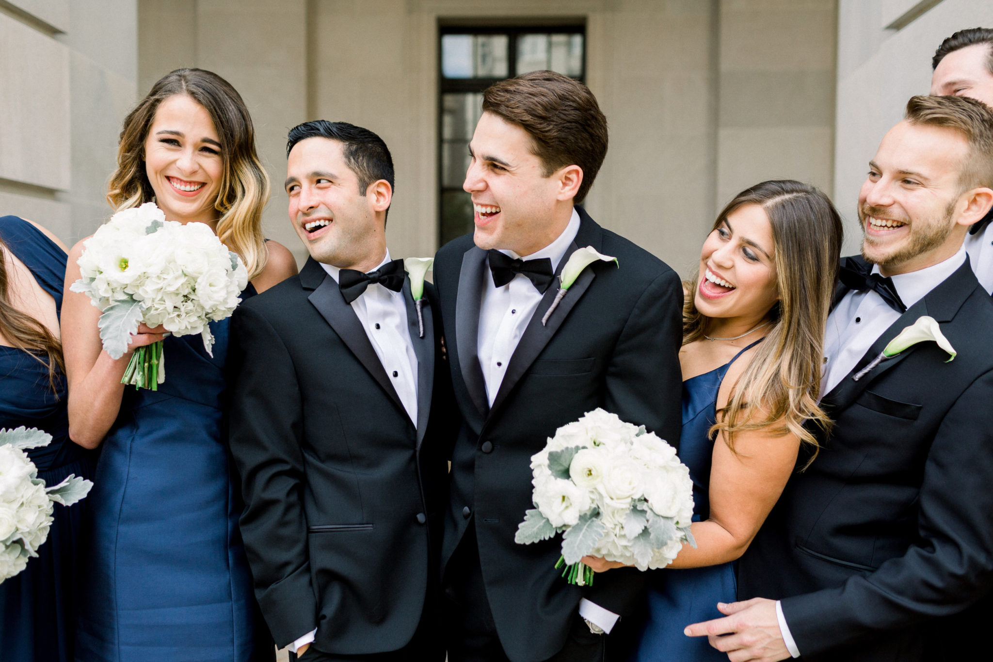 Photographer: Kerry Renee Photography | Venue: Sixth & I Historic Synagogue (ceremony); Ronald Reagan Building & International Trade Center (reception) | Florals: Twinbrook Floral Design | Production (Lighting, Reception Installation, etc.): Syzygy Events | Wedding Coordinator: Completely Coordinated | Hair & Make-up: Conceptual Beauty | Transportation: K & V Limousine | Cake: Edibles Incredible | Rehearsal Dinner: Medium Rare, Barracks Row | Groom’s Tuxedos: Lustre Formal Wear | Wedding Party Dresses: Alfred Sung | Wedding Party Tuxedos: The Black Tux and Lustre Formal Wear | Paper: Minted | Music/Entertainment: Bachelor Boys Band | Videographer: Quixotic Worx (https://vimeo.com/374196972) | Photo Booth: Monumental Photo Booths