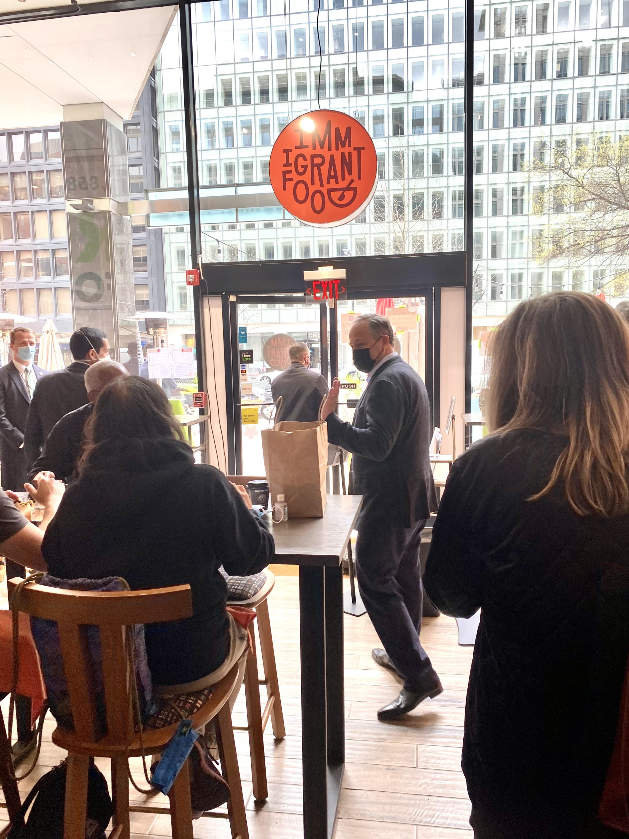 Second Gentleman Doug Emhoff was spotted out and about in DC today grabbing a bite to eat. But we’re not talking about a sad, slightly moist Pret A Manger boxed sandwich here.