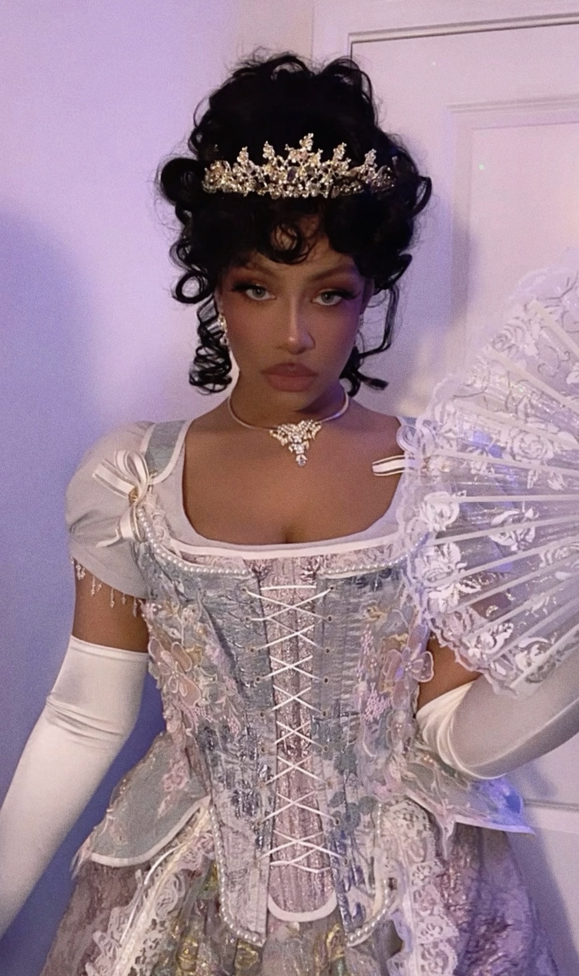 Lots of viewers marveled at Bridgerton’s costumes, but Ali decided to actually try to make one. She started working on a corset and—why not?—documented the process on TikTok. “The video was kind of a joke,” she says. “I didn’t know I was going to make an entire gown.”