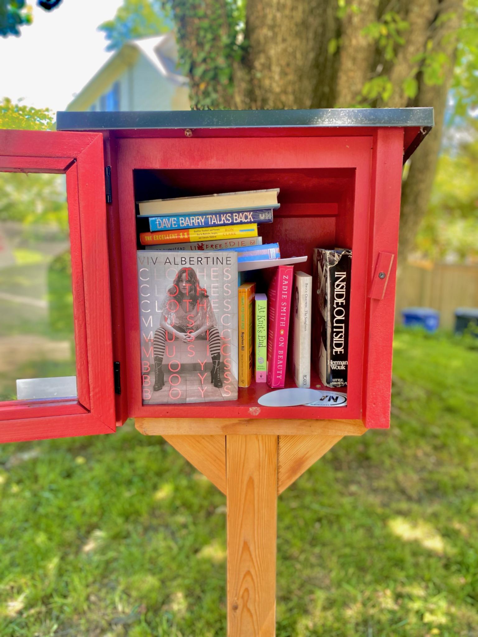 And then when Covid came around, I thought it made sense to make it more official. I bought one of those prefabricated little libraries. I’m not so handy that I could install it myself, so I bribed a few friends with coffee and donuts and they helped me put it up.