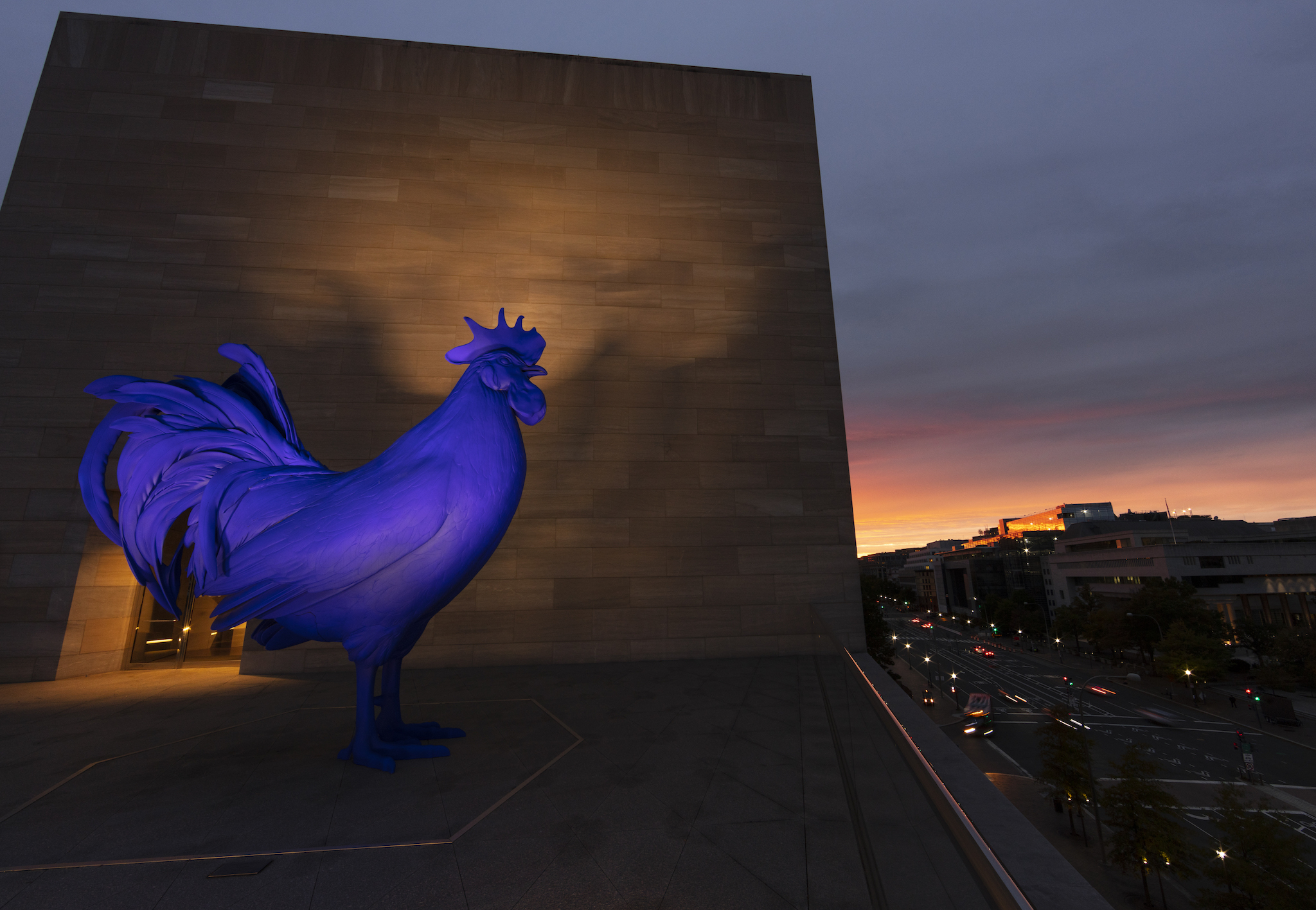 Katharina Fritsch’s 14-foot-tall blue rooster sculpture is now permanently part of the National Gallery’s collection, thanks to a donation from the Glenstone Museum in honor of the resilience of the American people during the pandemic.