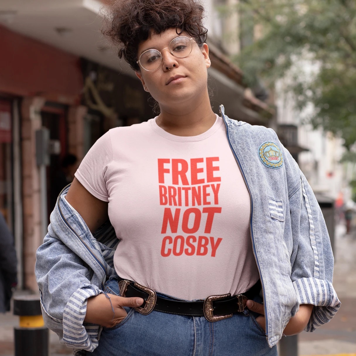 Proceeds from all of the Outrage’s products benefit various progressive groups. The Free Britney Not Cosby design (which is also now available on stickers and buttons) benefits anti-sexual violence organization RAINN, as well as Project LETS, an advocacy group for people who’ve experienced mental illness and trauma. Funk says she expects the shirts will raise $10,000 for the groups by this weekend.