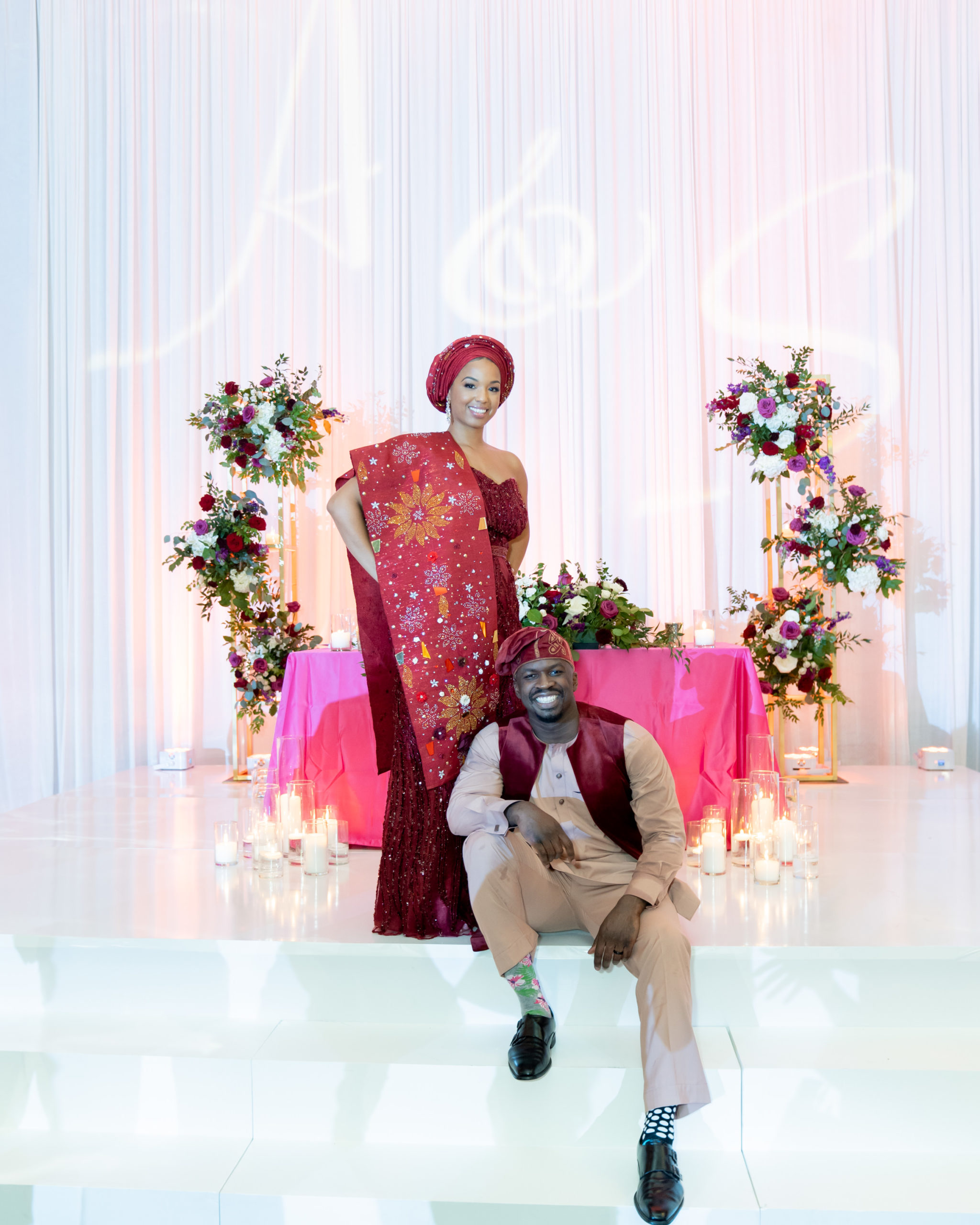 As a nod to the groom’s Nigerian roots, the couple changed into traditional Nigerian attire during the reception, and danced “the Money Spray.” “Originated by the Yoruba people in Nigeria’s Southwest, it is a tradition loved by many Nigerians,” explains photographer Chip Dizárd. “Money Spraying symbolizes a showering of happiness, good fortune, and a display of the guest’s affection for the couple. The bride and groom are ushered in and dance behind the wedding party.”