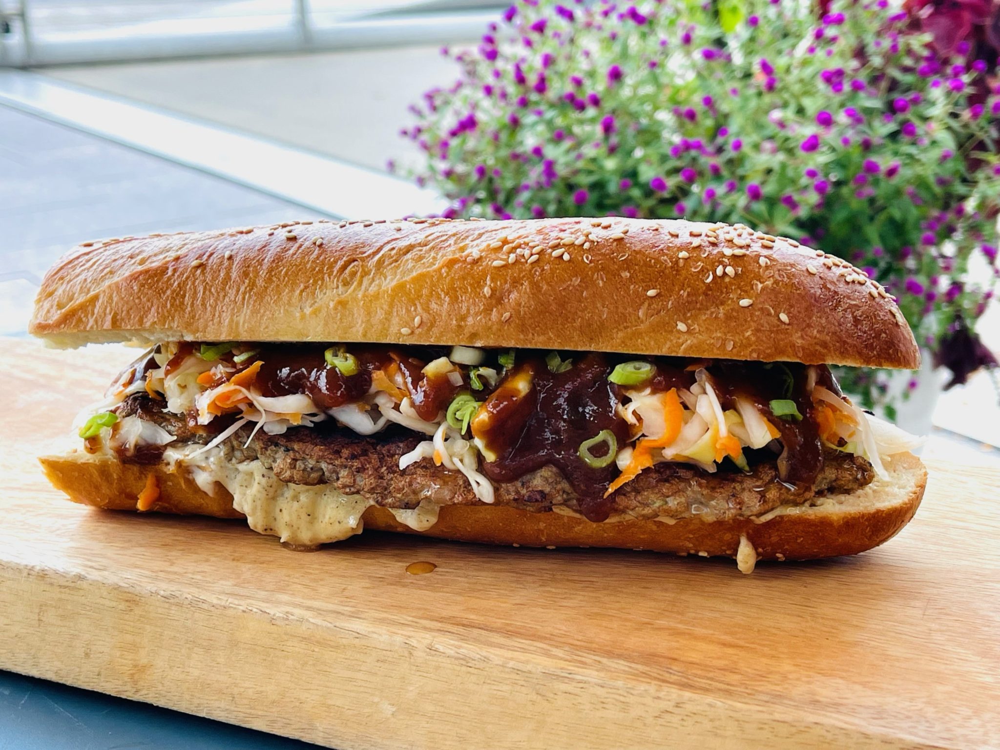 Albi chef Michael Rafidi created My Heart, which is made with smoked lamb, garlic toum, house habibi sauce, and feta on a seeded roll.