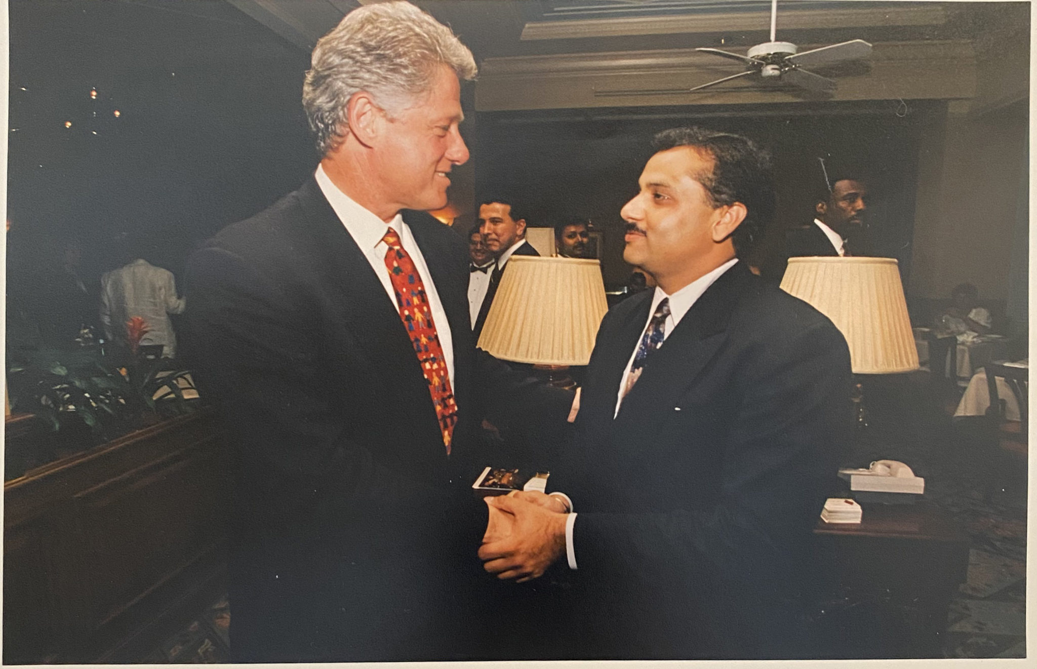 “He wanted a chicken dish, and we ended up giving him all the chicken dishes on the menu. He was amused by that. Mrs. Clinton, she likes spicy food. I remember he had a Kingfisher beer, and she had the mango Bellini. We made him the flambé cobra coffee at the table. It was such a festive evening. If you ever met President Clinton, he always makes you feel very comfortable.