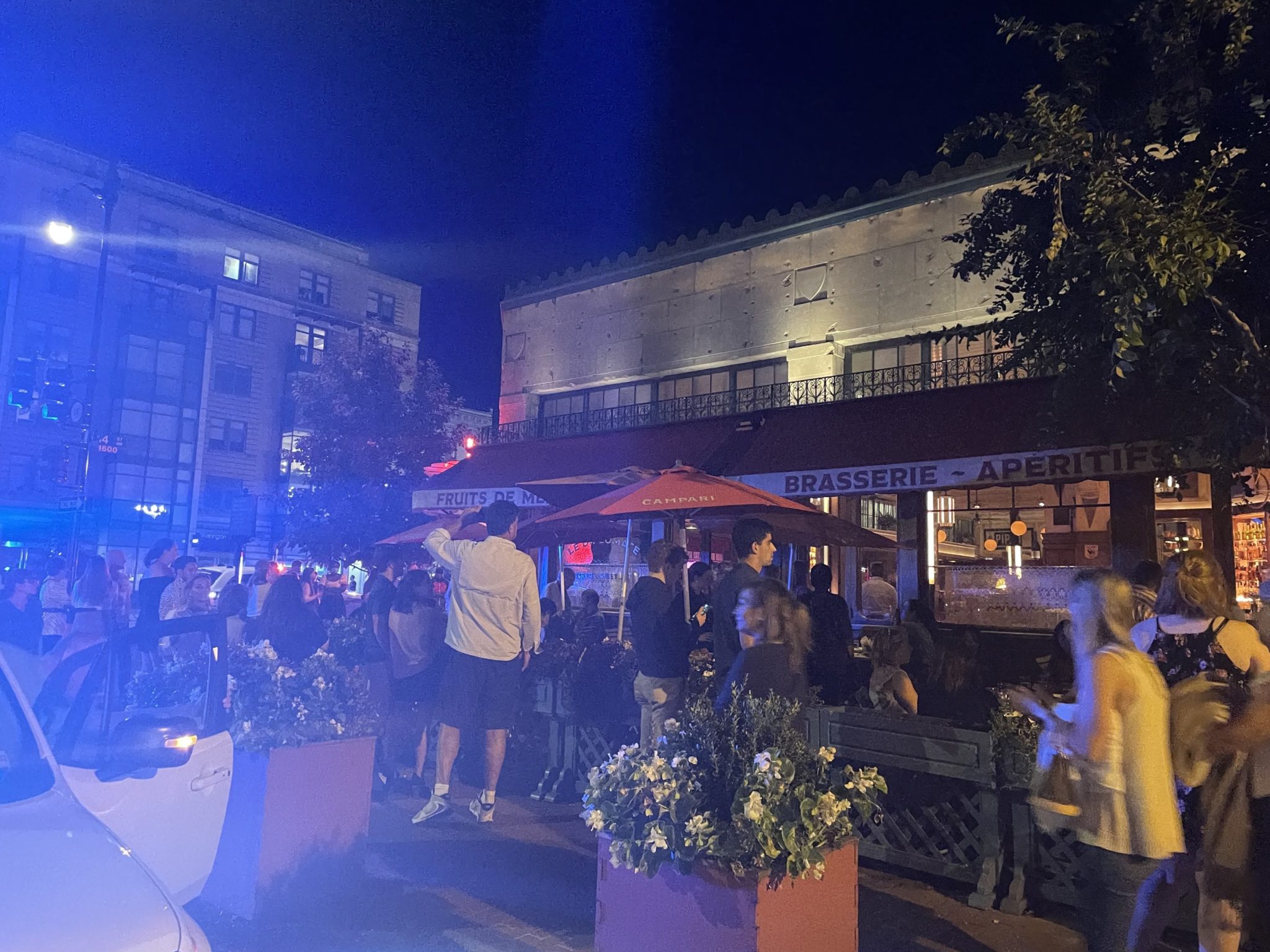 Man at Le Diplomate standing on bars throwing bottles at everyone in the restaurant,