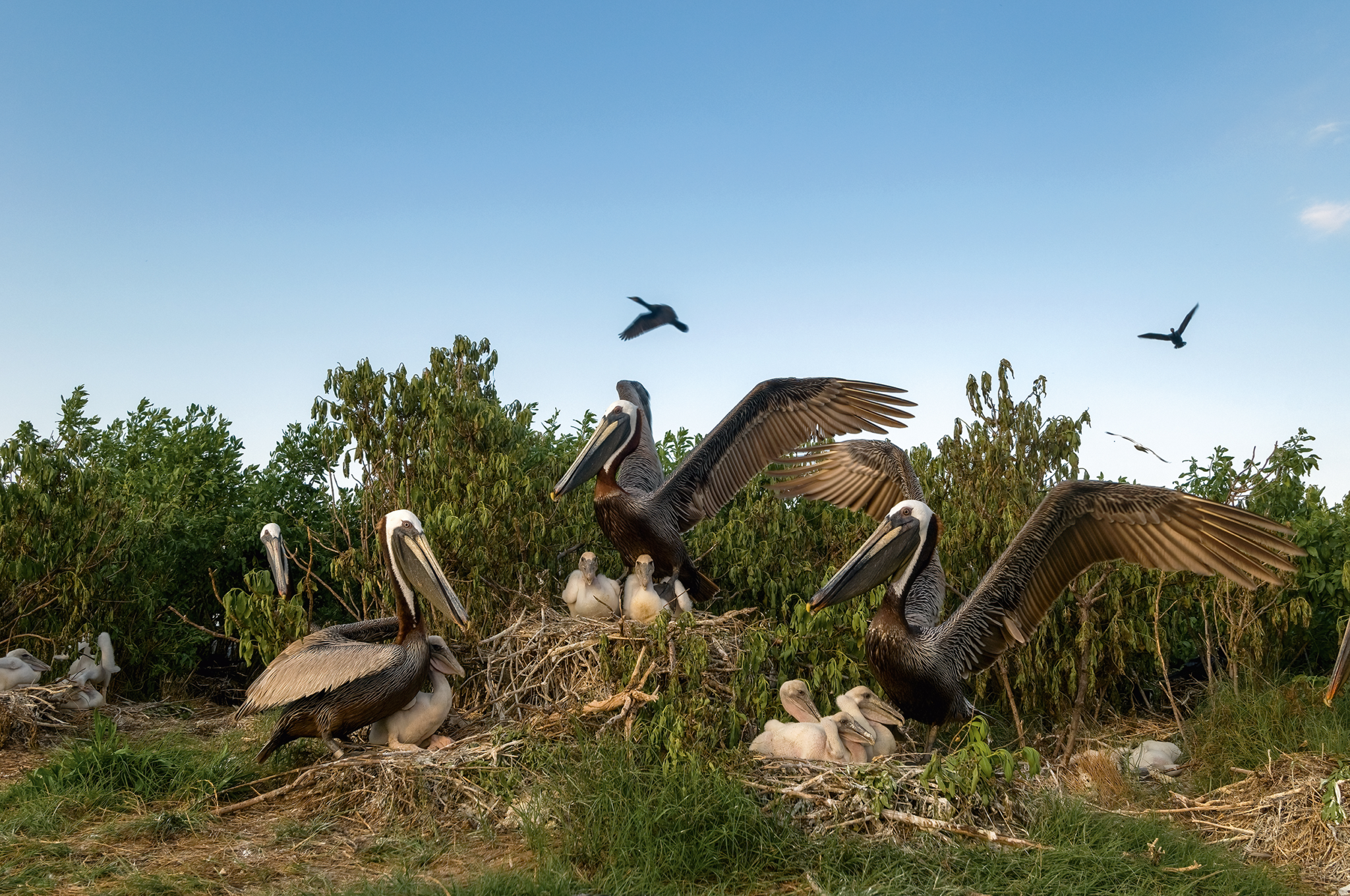 1. Brown pelicans in their nest. Fleming wasn’t sure where this project would lead in 2009 when he took his first trip to Smith Island to capture images of the birds. He soon realized there was a much bigger story to tell. “I immediately wanted to go back” to the island, he says.