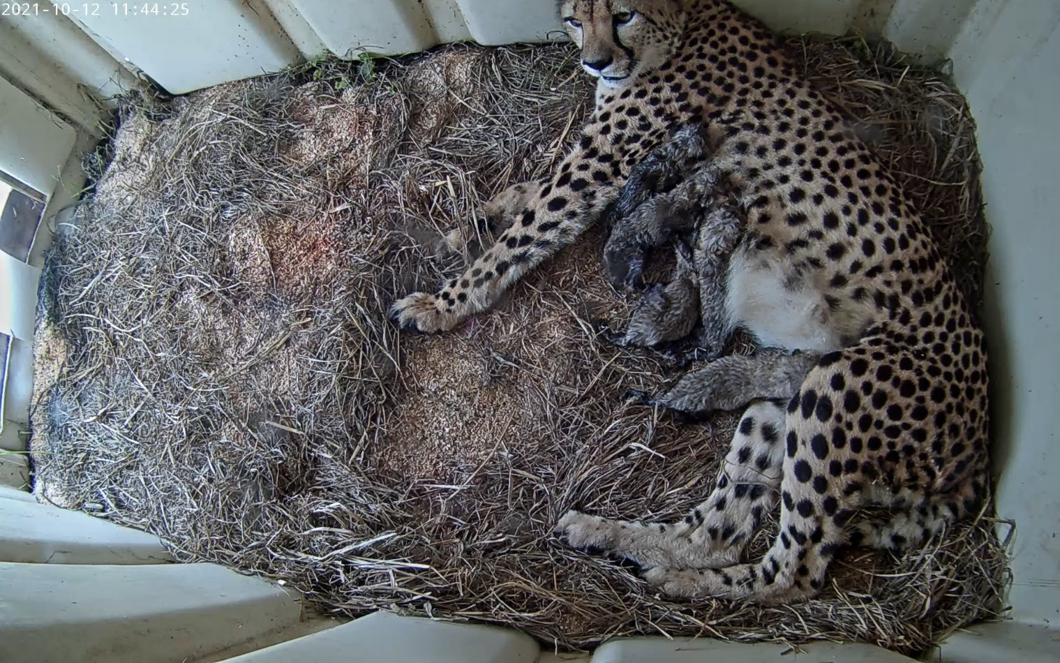 Five cheetah cubs were born today at the Smithsonian Conservation Biology Institute in Front Royal, Virginia. five-year-old Rosalie delivered the litter sired by ten-year-old Nick (the first cheetah born at SCBI) between 5:20 AM and 11:16 AM this morning.
