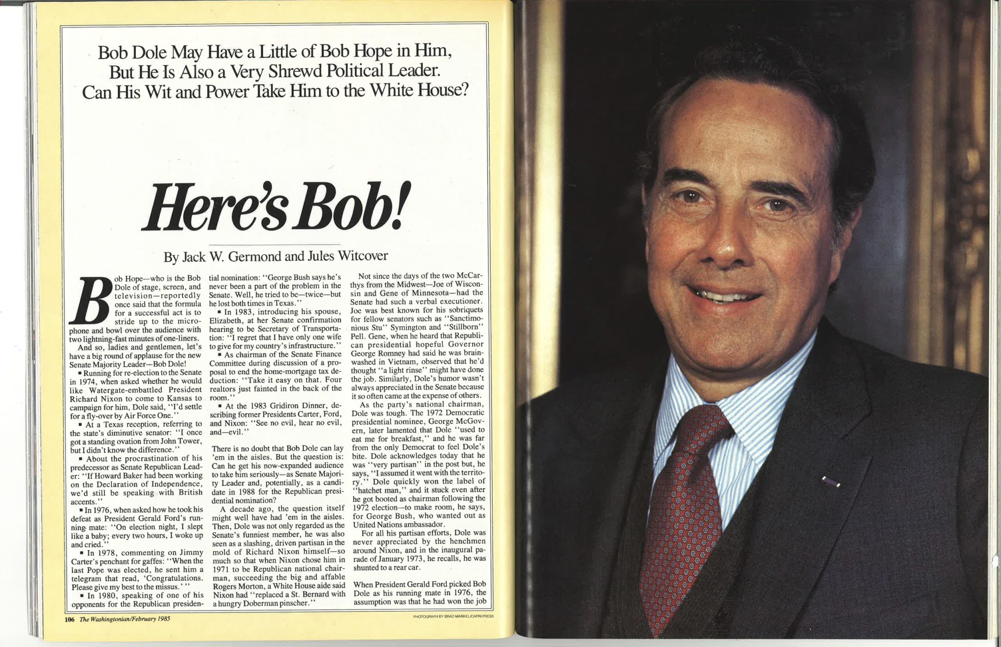 In February 1985, Washingtonian ran the following profile of Dole, who had been elected Senate Majority Leader the year before.