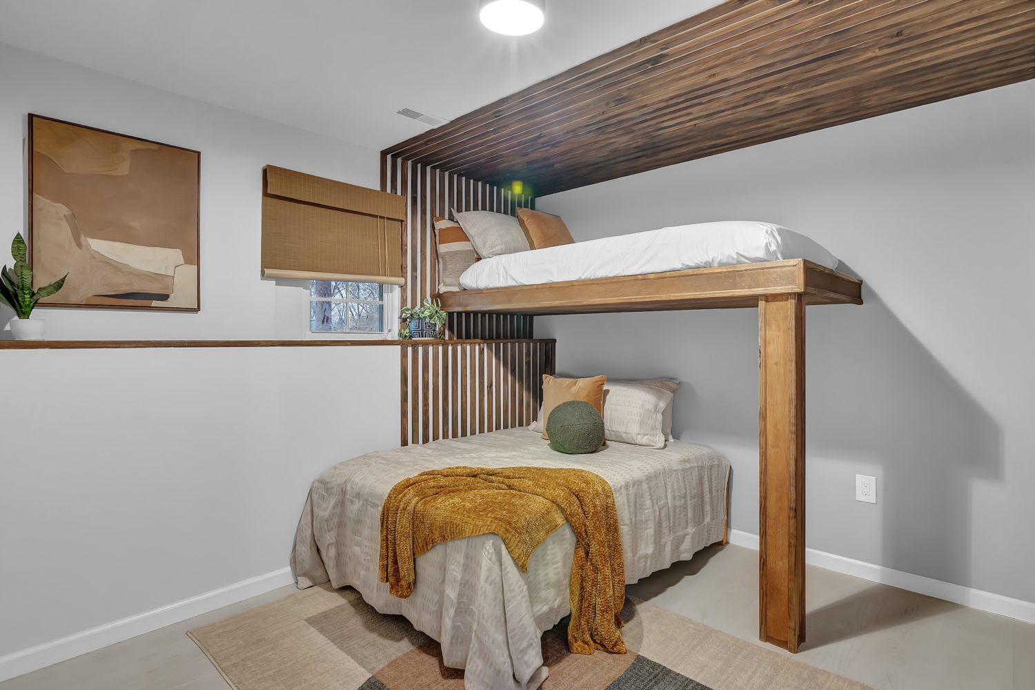 A pair of rooms inside a Craftsman in American University Park exemplify sage’s versatility. In the sun-room, which features a statement wall covered in a tree pattern by Lewis & Wood, the color works as a soothing neutral. In the attic-turned-office—done in a crane print found on Etsy—it adds a bold pop. “It’s that kind of dynamic color,” says Evelyn Pierce Smith, who designed both rooms. “It will work if you want a dramatic, dark space or if you want a [brighter] space.”