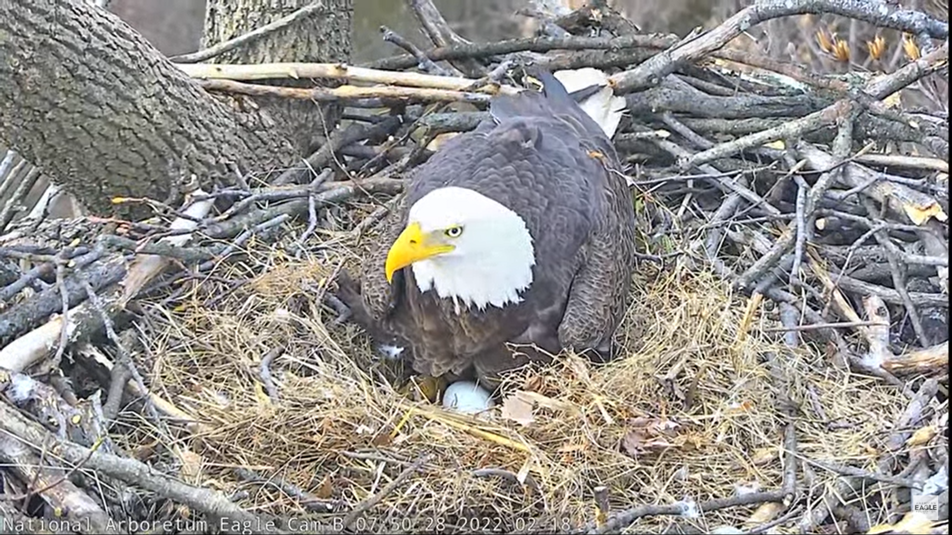 One of two baby eagles at the National Arboretum has begun to slowly emerge from its egg. Once fully hatched, it will be the first eaglet born at the Arboretum since 2018. The eaglet, temporarily labeled “DC8,” is the offspring of Mr. President and LOTUS, a celebrity pair of bald eagles whose unfolding, perhaps scandalous, love story captured Washington’s attention in early 2021.