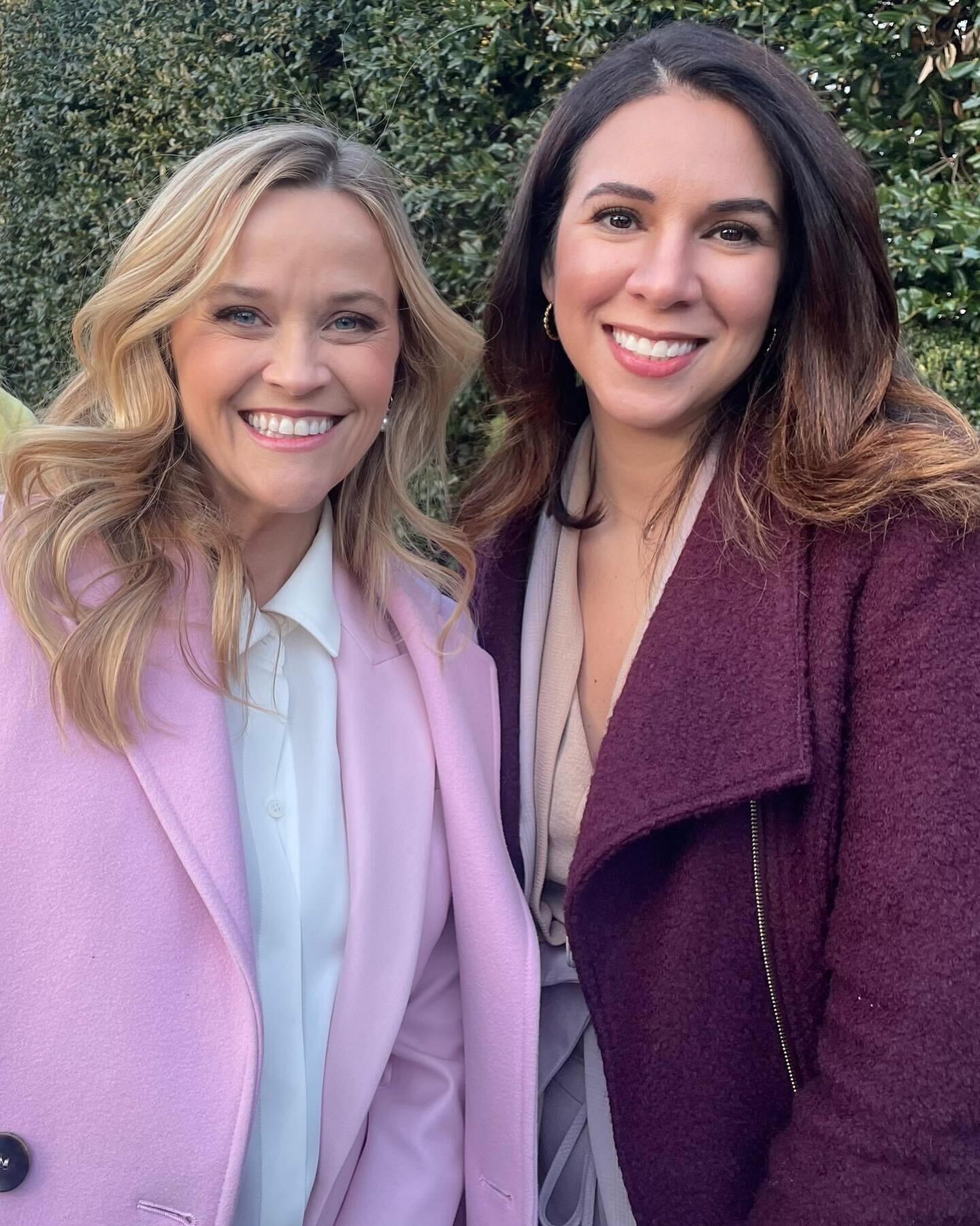 Was that Reese Witherspoon striding down M Street in Georgetown earlier this week? Indeed! The Academy Award-winning actor/producer popped up at some familiar DC places Tuesday and Wednesday. Most notably, she appeared at a Women’s History Month reception honoring women artists at Vice President Kamala Harris’s residence. There, in a very Legally Blonde pink outfit, she greeted civil rights activist Dolores Huerta, and took selfies with friends.