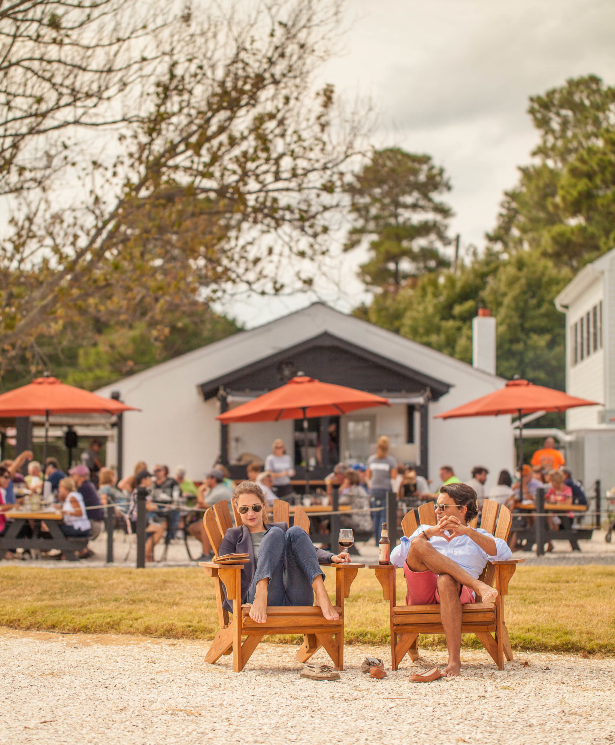 Your must-get dinner reservation is at Adrift (572 Rappahannock Dr., White Stone), run by chef Devin Rose and his wife, Kati, who handles front of the house. His seasonally slanted cooking is an exuberant expression of modern Virginia cuisine. The couple recently divided the restaurant space to make way for Moor, a small wine shop and market stocked with lots of Virginia-made products—sorghum hot sauce from the Shack, Lindera Farm vinegars, cheeses from Twenty Paces. It serves a concise lunch menu of sandwiches and small plates Friday and Saturday.