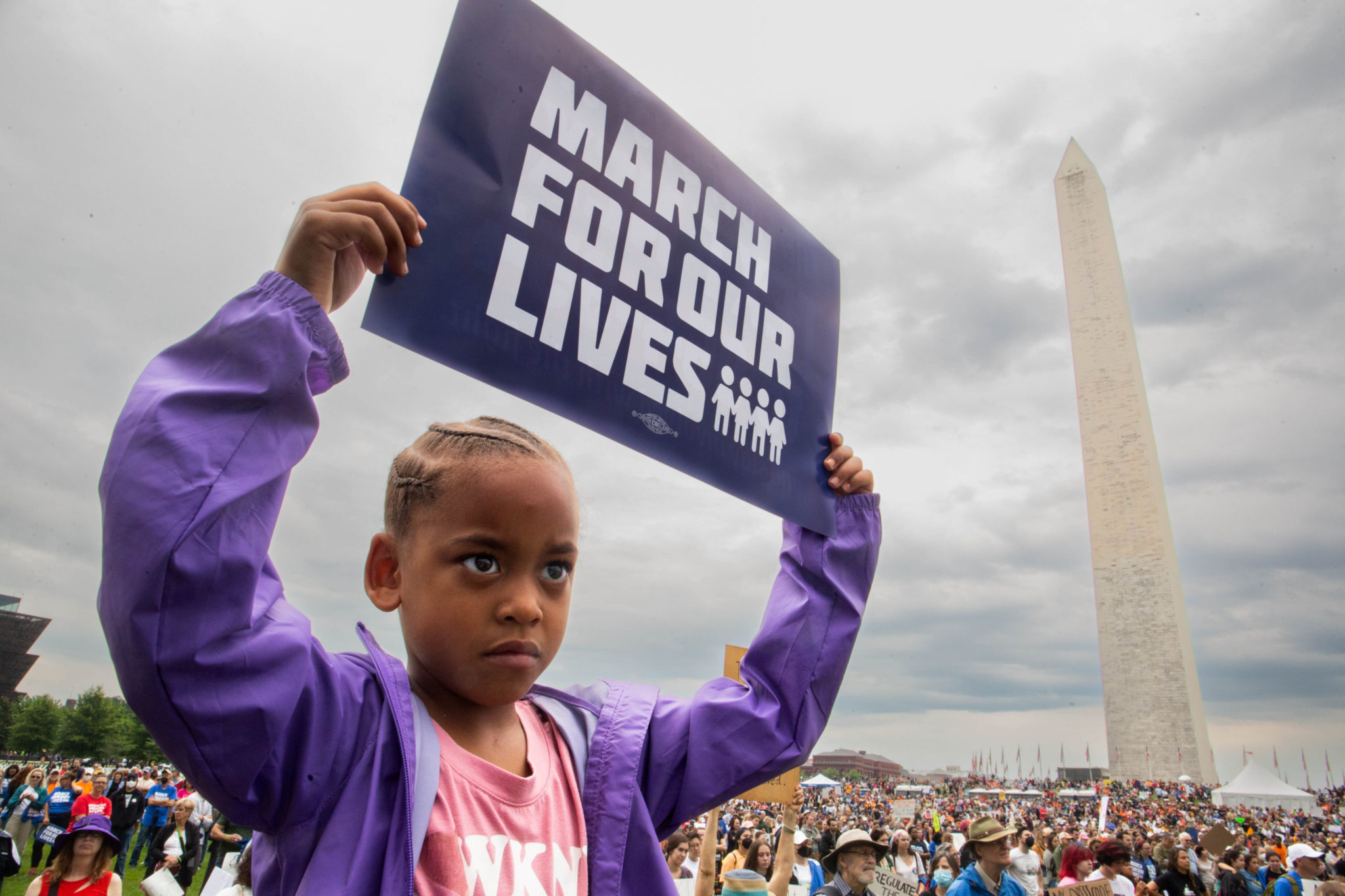 Roughly three weeks after the massacre of 19 elementary school students and two teachers in Uvalde, Texas—and 23 years since the Columbine High School massacre—thousands gathered Saturday on the National Mall to demand stricter gun laws.