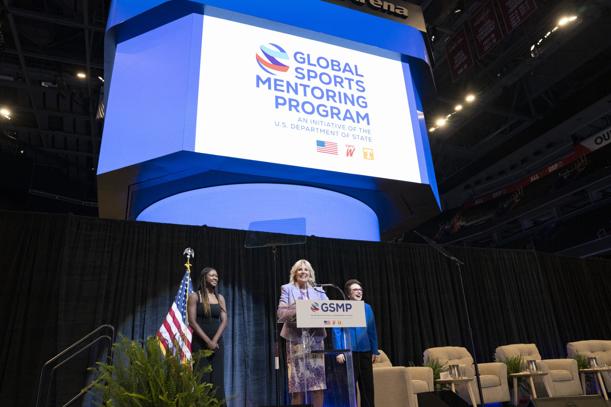 King and Biden discussed the importance of the landmark legislation, which was signed on June 23, 1972 and guaranteed equality for women in sports and education. The event, hosted by the State Department, also commemorated the 10th anniversary of the Global Sports Mentoring Program, an initiative that pairs women across the world with senior executives from U.S. based companies such as ESPN, Gatorade, and the U.S. Olympic and Paralympic Committee.