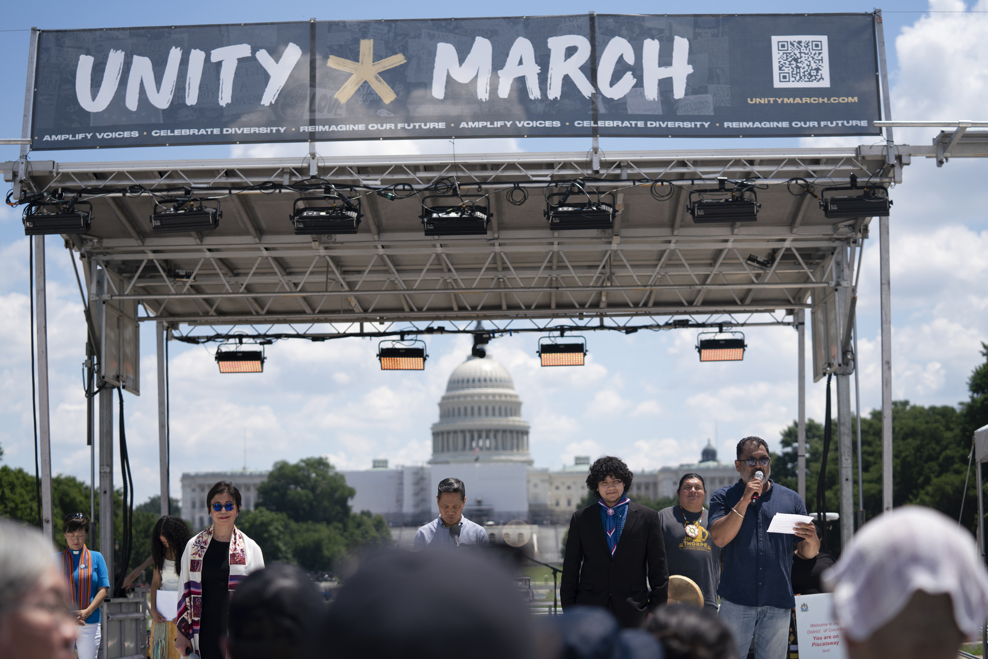 A diverse crowd gathered on a sweltering Saturday for the first-ever Asian American-led Unity March at the National Mall. Over 60 Asian American and Pacific Islander advocacy organizations led the event in response to a rise of anti-Asian racism during the pandemic and the murders of six Asian women at Atlanta massage parlors in March 2021.