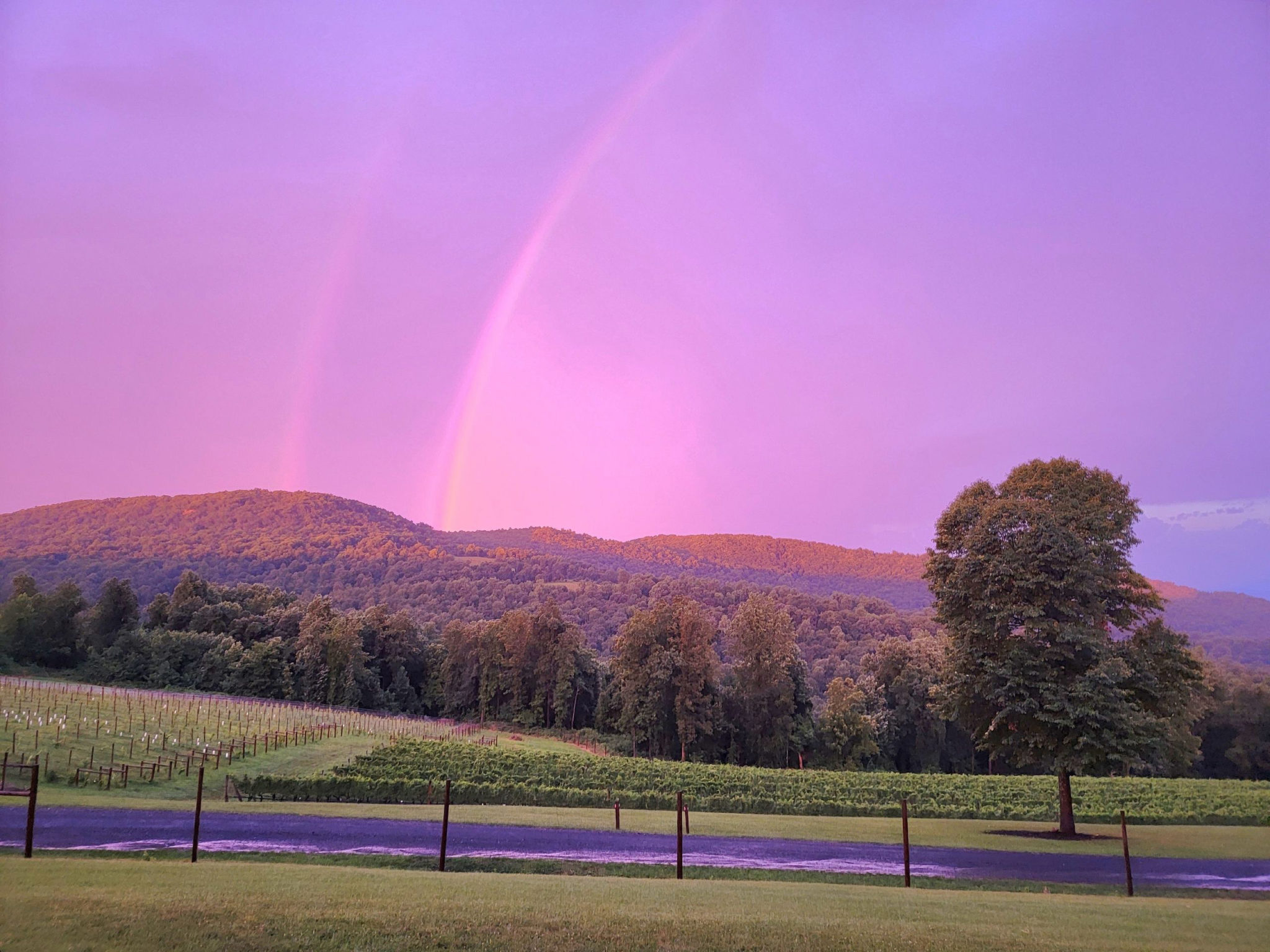 Trail signs at the tasting room mark the start of the three-quarter-mile Chester Gap Waterfall Trail. The moderately challenging hike winds through woods and vine-yards to a two-story spring-fed waterfall cascading down a rock wall—the headwaters of the Rappahannock River. Back at the winery, enjoy views from one of the highest tasting rooms in Virginia, at 1,300 feet.