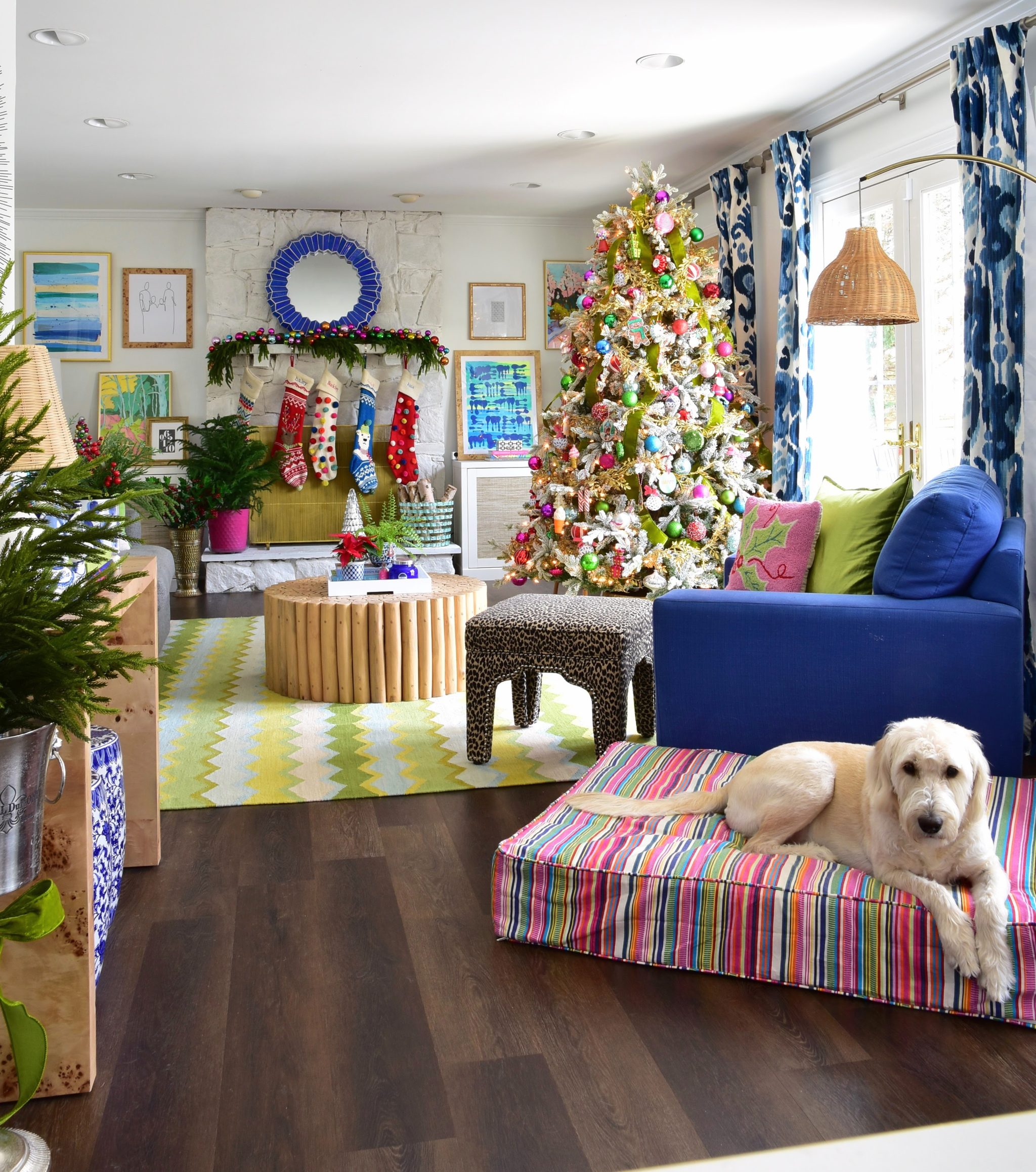Designer Kate Dreyer of Kate Decorates already has a colorful home, but she makes it extra bright for the holidays. “I always do it with what I like to call a ‘normal-person budget’ in mind,” she says—aka easy, cost-friendly festive updates.