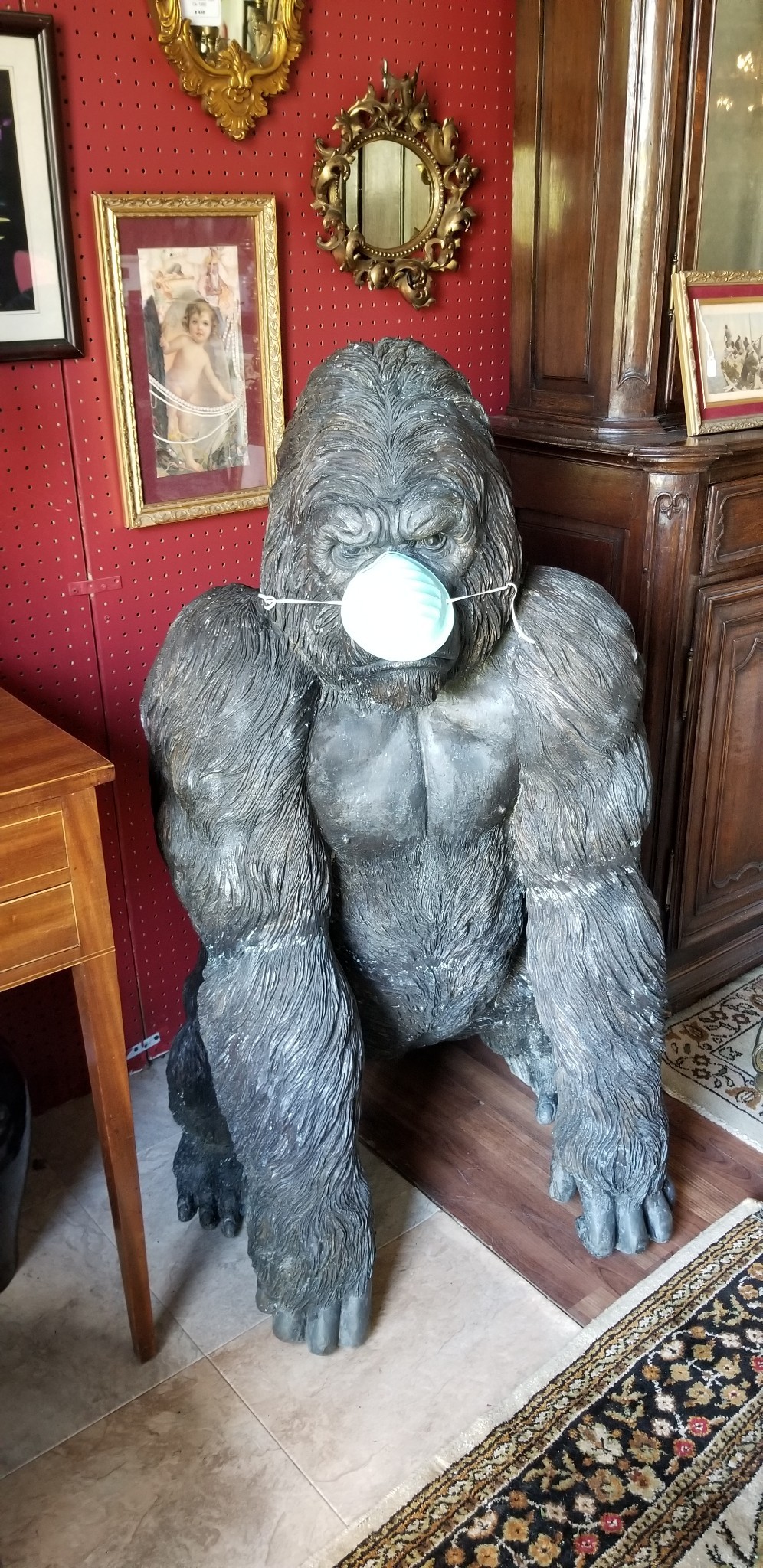 Jamgochian had become quite attached to the gorilla, which she’d purchased at an auction early in the pandemic. She first placed him inside the shop, but moved him outside a few months later, when he became a selfie magnet. Jamgochian jokes that she almost started charging a dollar per photo—she’d make more money from that than from selling him.