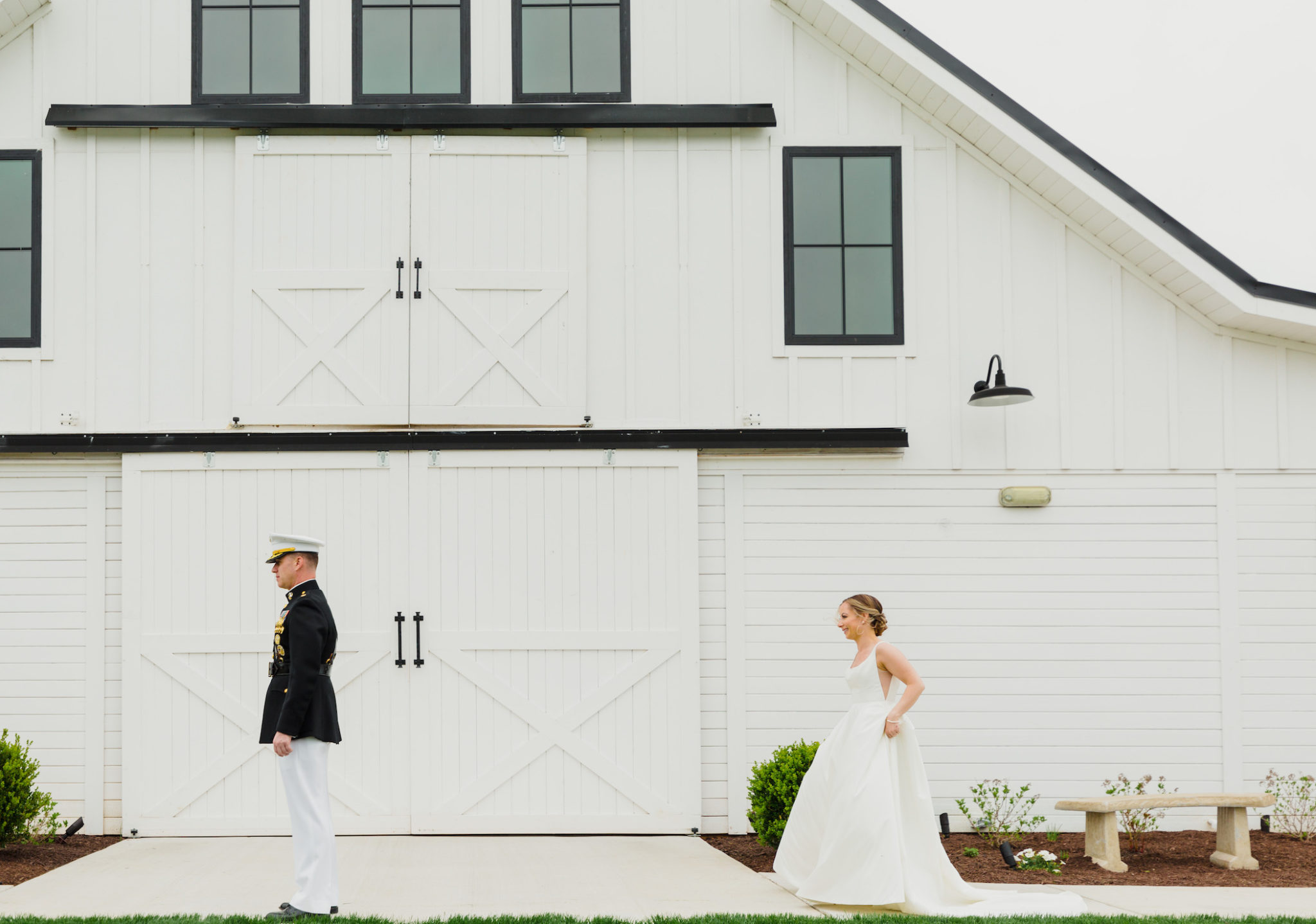 Photographer: United Photography | Venue: The Barn at Willow Brook | Planning and design: A Fine Fete Events | Florist: Springvale Floral | Stationery: The Dandelion Patch | Caterer: Windows Catering | Dessert bar: Signature Sweets by Amanda | Hair and makeup: Beauty by Audrey B | Bride’s attire: BHLDN | Groom’s Attire: Marine dress blues (ceremony); Enzo Custom (reception) | Bridesmaids’ attire: BHLDN | Music: Dan Goldman Events | Transportation: Sunny’s Limo | Videographer: Bobby Banz Productions (check out their video here)