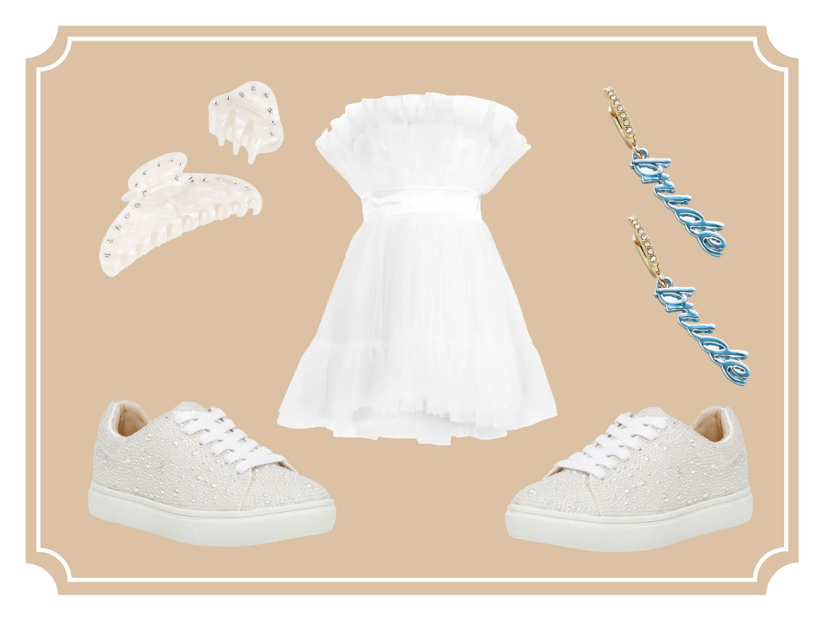 You can lean into your fun and sexy side for bachelorette-party attire. Sequins, sets, and of course accessories (like a custom jacket, hat, or handbag) are ideal for a girls’ weekend. If you’re heading out of town, be sure to dress for the weather.