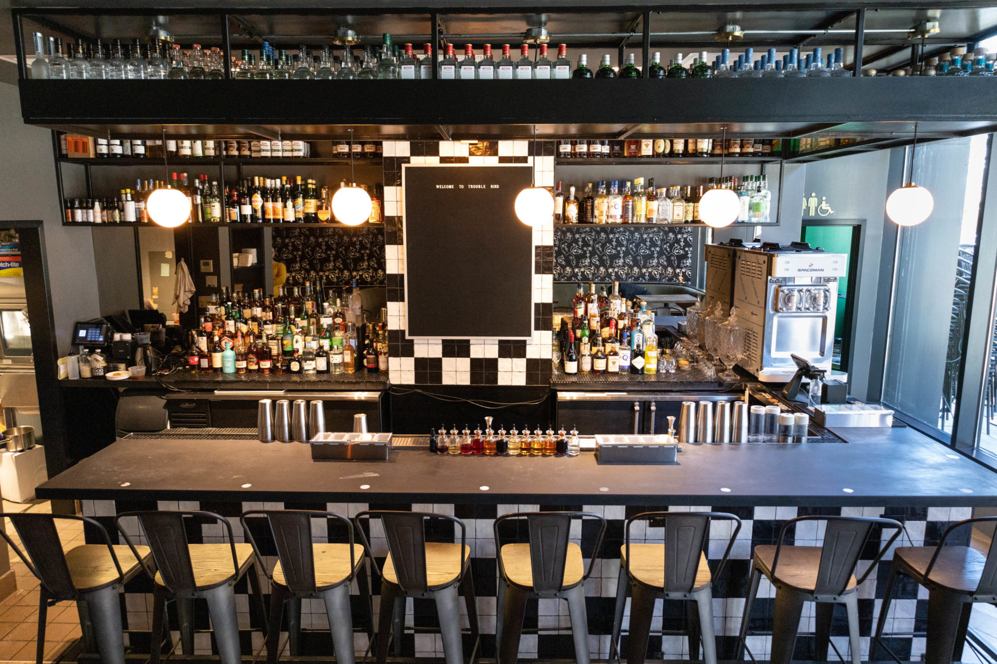 Both bartenders cut their chops at finer-drinking spots that aren’t afraid to play (cue Columbia Room’s LIITs and Silver Lyan’s fancy Jello shots). At Trouble Bird, you can sip “classic-ish” drinks like an avocado and bay leaf daiquiri or salted apple amaretto sour—though frozen cocktails, boilermakers, or good dirty martini are always on offer. Hurn says their first seasonal theme, “Breakfast for Dinner,” is all about “winter flavors and stuff that will warm you up from the cold.” Think, if you can, of an everything bagel-spiced Sazerac or flap jack-inspired concoction with brown butter mezcal and buckwheat bitters.