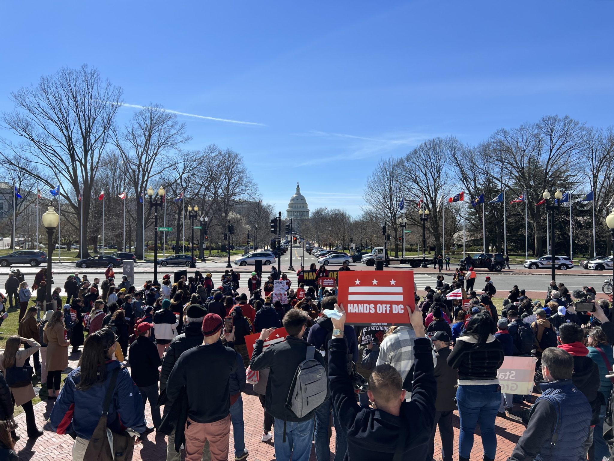 Over a dozen people were arrested today during a Hands Off DC rally supporting city autonomy and statehood and protesting Congressional interference with home rule.