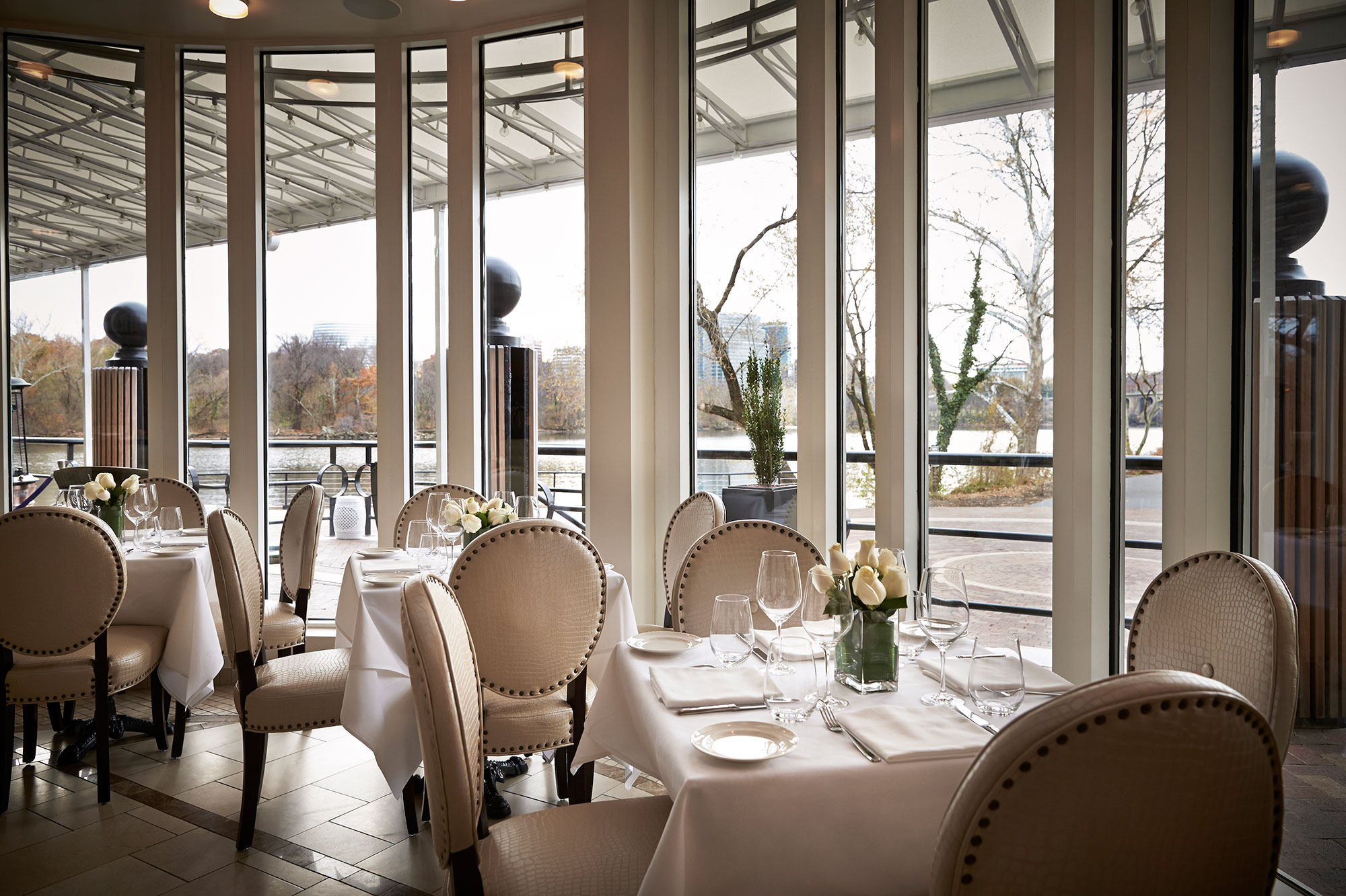 The elegant dining room Fiola Mare’s position on the river in Georgetown pairs well with extravagant seafood plateaus and crudos, plus luxe touches such as caviar service.