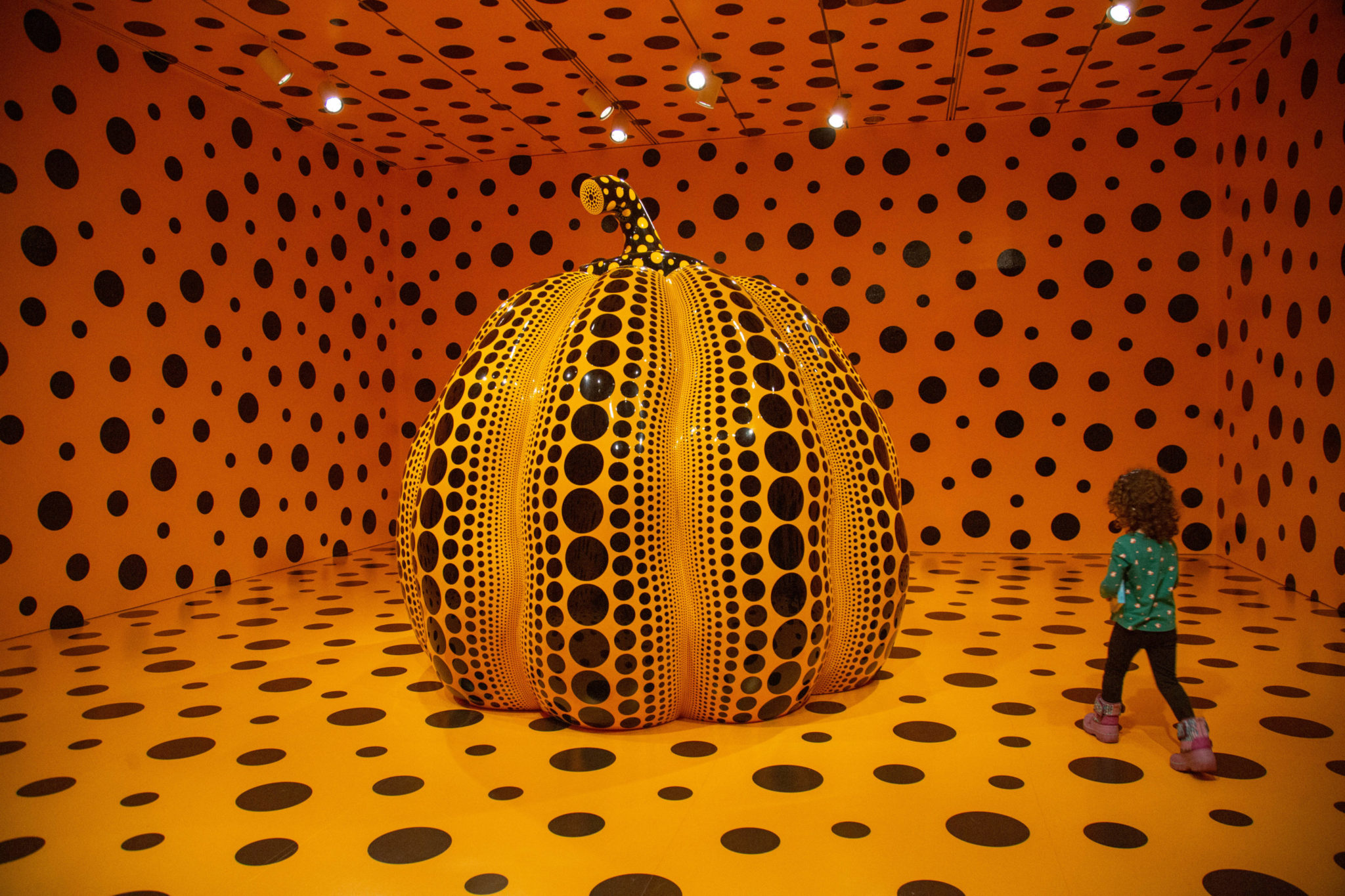 The 94 year-old Japanese artist is perhaps best known for her selfie-friendly Infinity Mirror Rooms. This show has two of them—her first, from 1965, and her most recent, completed in 2017. The display also includes a giant pumpkin sculpture, a decorated coat, and an early painting.