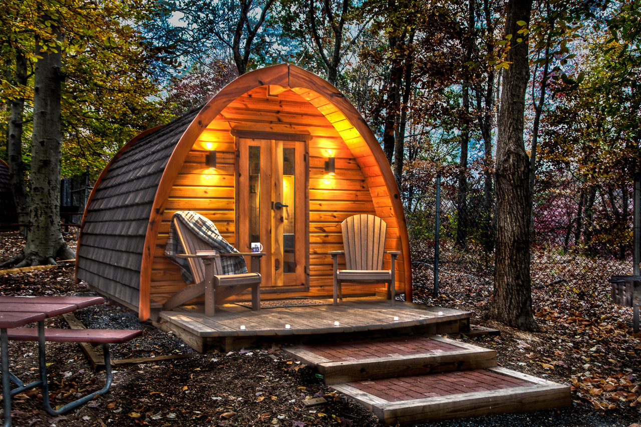 For a glamping experience closer to home in College Park, stay in one of the wood-paneled “pods” at Cherry Hill Park. Pods can sleep two to four, and some of the tiny homes allow pets.