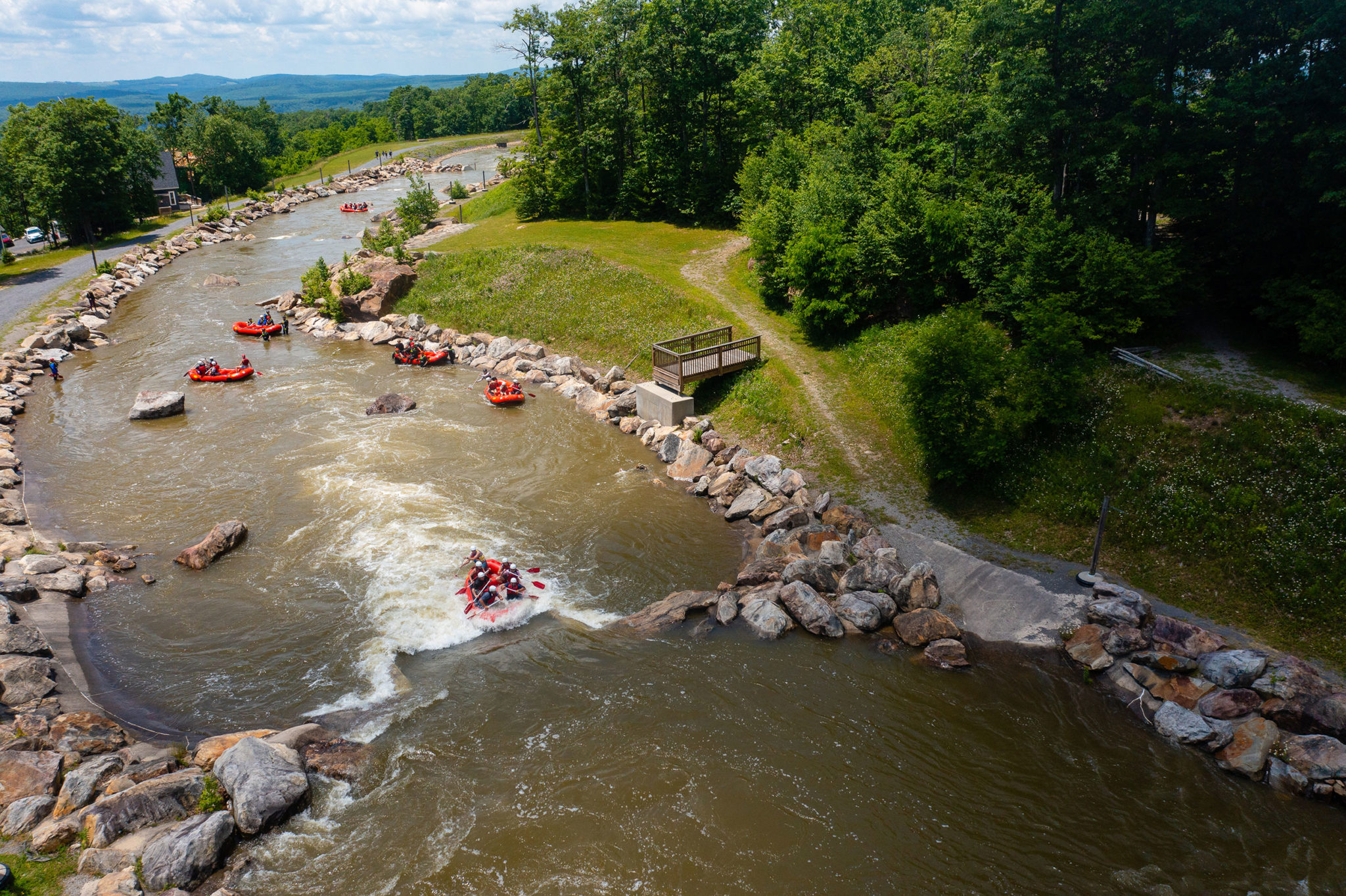 Want to take paddling to the next level? Wisp has a 1,700-foot recirculating whitewater course on the top of the mountain, for gentler rapids than some on the nearby Youghiogheny River. Guides help rafts and kayaks maneuver the rock-lined loop. You can ride the ski chairlift to get to the course, taking in mountain and lake views.