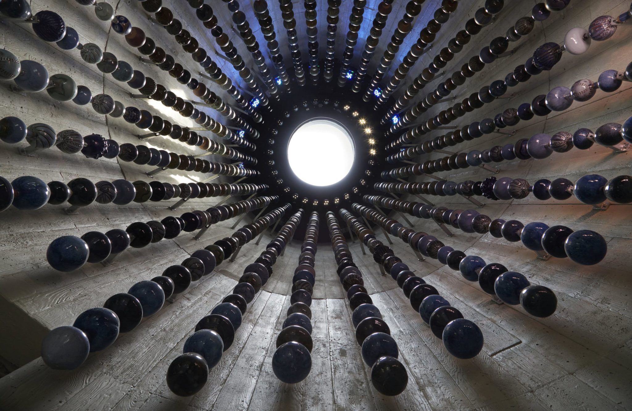 What Durrett did know is that she wanted the piece to be huge, as most of her work is. As a younger artist, Durrett often noticed that her creations were growing larger and larger, until a mentor finally suggested she start designing pieces specifically for outdoor display. In this case, Durrett says, she “wanted the space to feel out of scale with your own body, so that your eye would be drawn upwards. Looking up at these vessels, and then looking up toward the sky.”