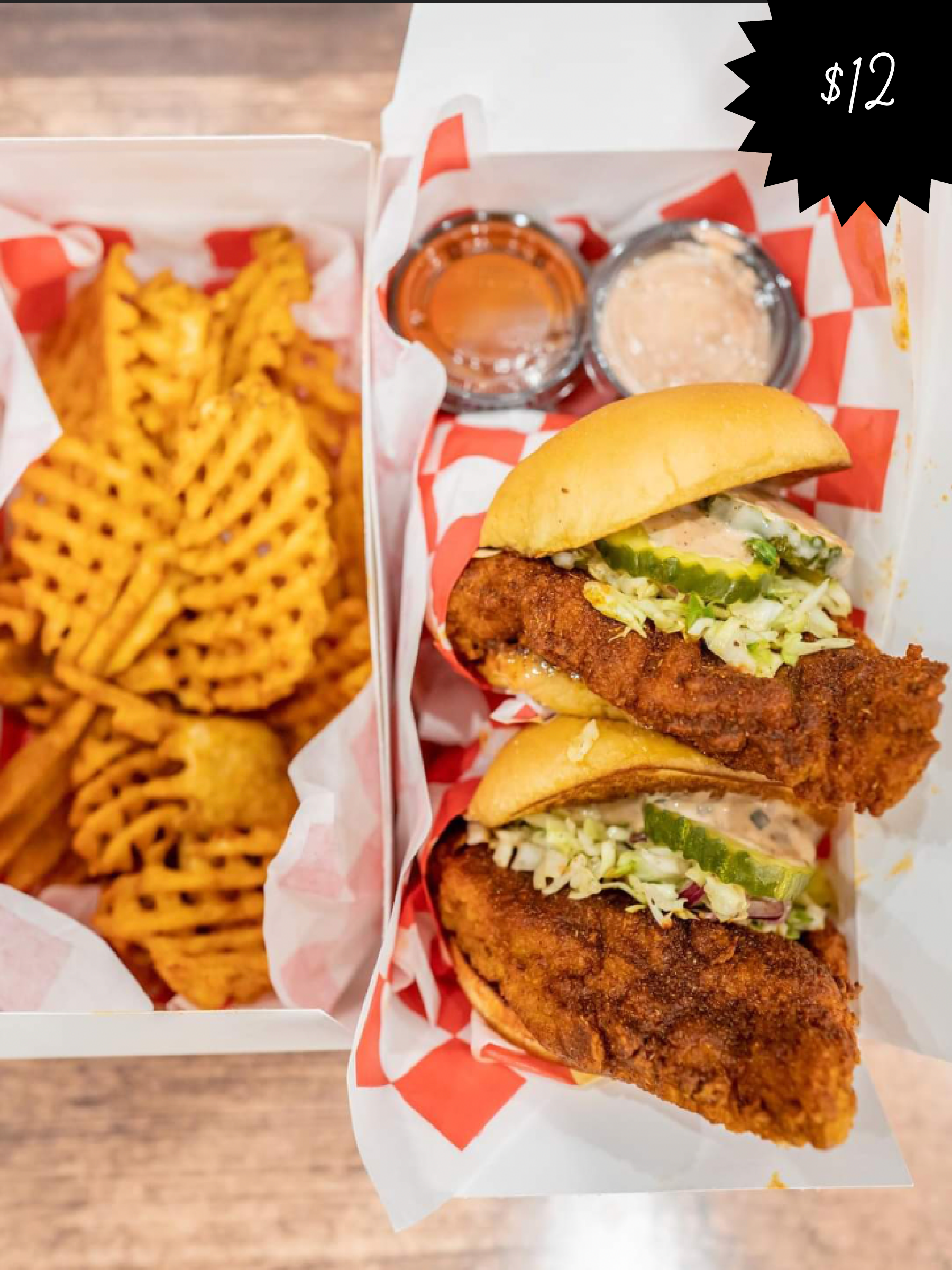The hot-chicken sandwich wave has largely passed, but these twin shops are where we return when a craving strikes. Choose your spice level wisely—there are six, and even level two is fiery. Pickles, slaw, and rémoulade-like comeback sauce can buffer only so much.