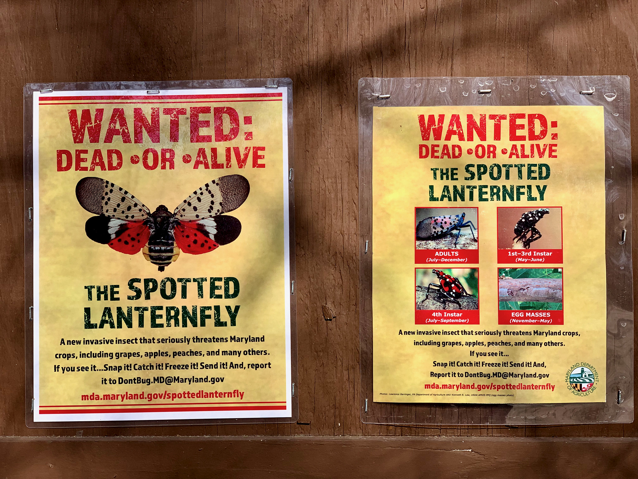 There’s no need to panic if you see one of the mature bugs flying your way: Spotted lanternflies don’t bite or sting humans, and they don’t necessarily mean a death sentence for your trees. In suburban and urban environments, the insects are mainly a nuisance, given how quickly they can multiply, says Joan Allen, chief of Fairfax County’s Pest Management Branch. Still, they do pose a some threat to agriculture, particularly in more rural environments such as the the area’s vineyards. Allen explains that the insects excrete a sticky, smelly substance called “honeydew” onto plants while feeding, which then fosters a fungus that can stress out plants and trees.