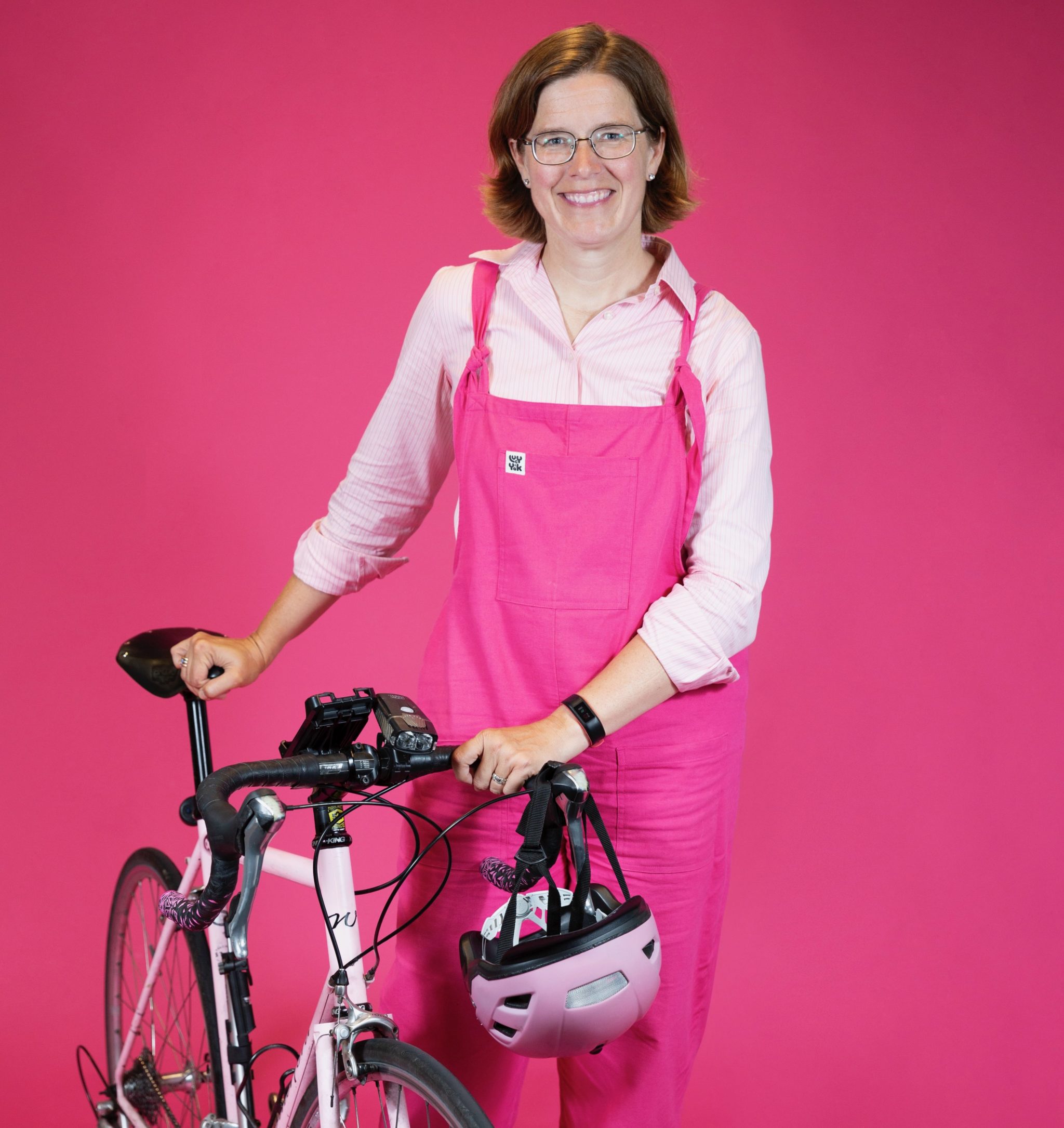 My 15-year-old pink bike. My husband and my father bought that for me when my son was born. It’s very tender to me. It was custom-made for me, and it’s the color I love. Part of the joy of biking for me is that story and that bike and who gave it to me and why they gave it to me. It’s just it’s a very emotional connection.
