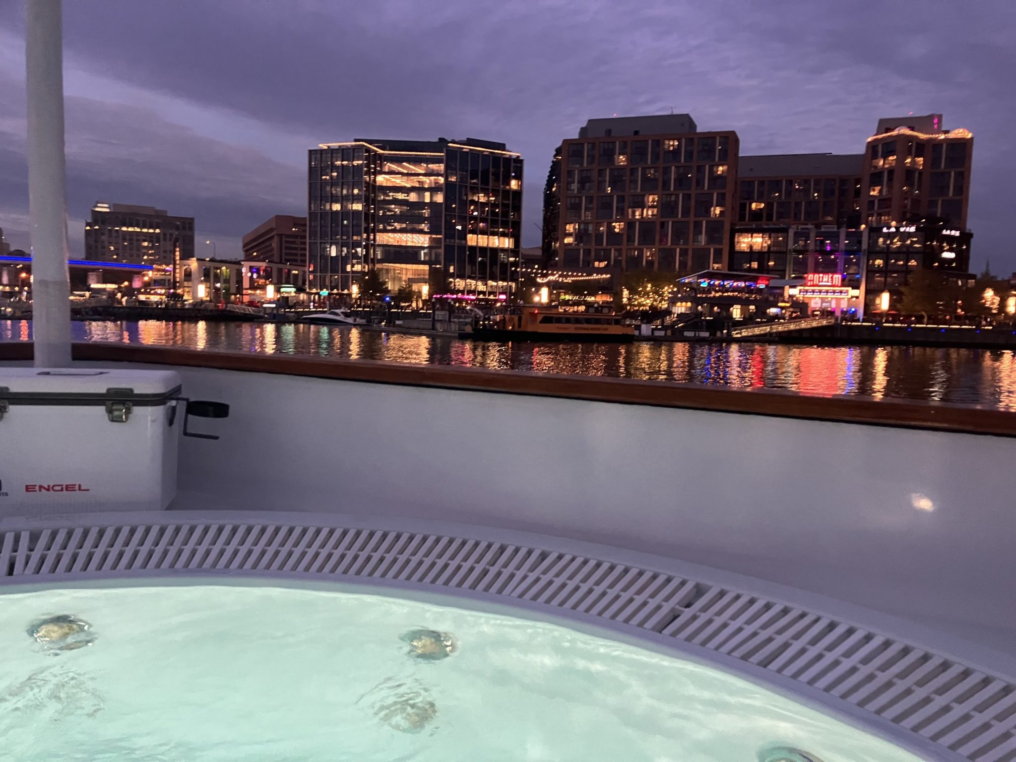 This September, the boat relocated to DC, and my colleague received a press release about its arrival. It described the boat’s two-hour BYOB cruise of the Potomac as a “unique and unforgettable experience” that “combines the serenity of hot tub relaxation with the stunning views of the iconic DC landmarks.”