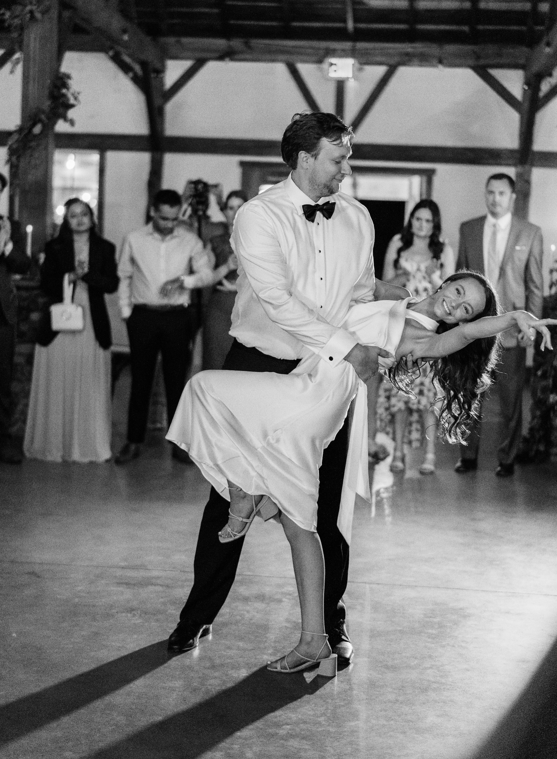 The pair—who both have extensive dance backgrounds—did a choreographed dance to “Norah Jones’ Come Away With Me” for their first dance, and then shared a private last dance to “Golf On TV” by Lennon Stella, while the guests lined up for the sparkler exit.