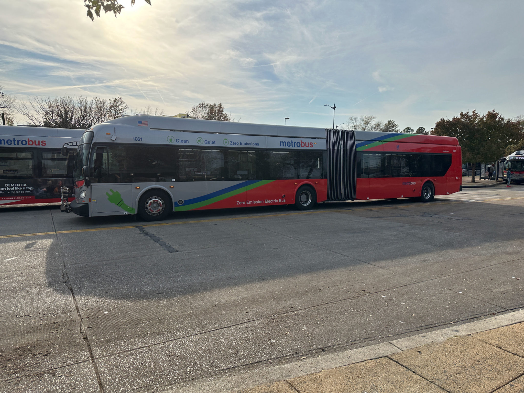 In WMATA garages, rails along the vehicle’s roof connect to an automated charging system that descends from the ceiling. Buses can also charge at resting spots throughout the region. The ZEBs are expected to operate for ten to 12 hours on one charge.
