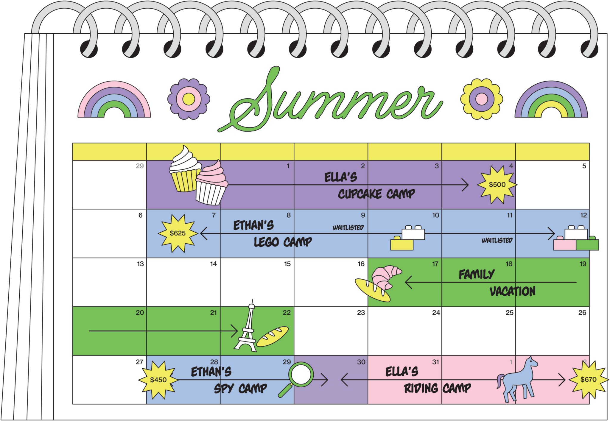 The first time I signed my kids up for summer camp, a fellow preschool parent gave me a heads-up that the school’s camps went quickly. I set my alarm for 6:45 am on a January Saturday so I could book the $500-a-week camp when registration opened at 7. But it happened to be a rare Saturday on which my children slept in, so I hit snooze just once and found myself with a fraction of the weeks left to choose from, waitlisted on others. When I later mentioned my surprise about the competition for slots to a friend whose kids are a few years older, she chuckled and said, “Oh, it’s serious. I will send you a copy of my spreadsheet. I have the entire summer mapped out by week, with which kid goes to which camp.” Spreadsheets, I’ve since learned, are a tool of camp-planning parents everywhere.