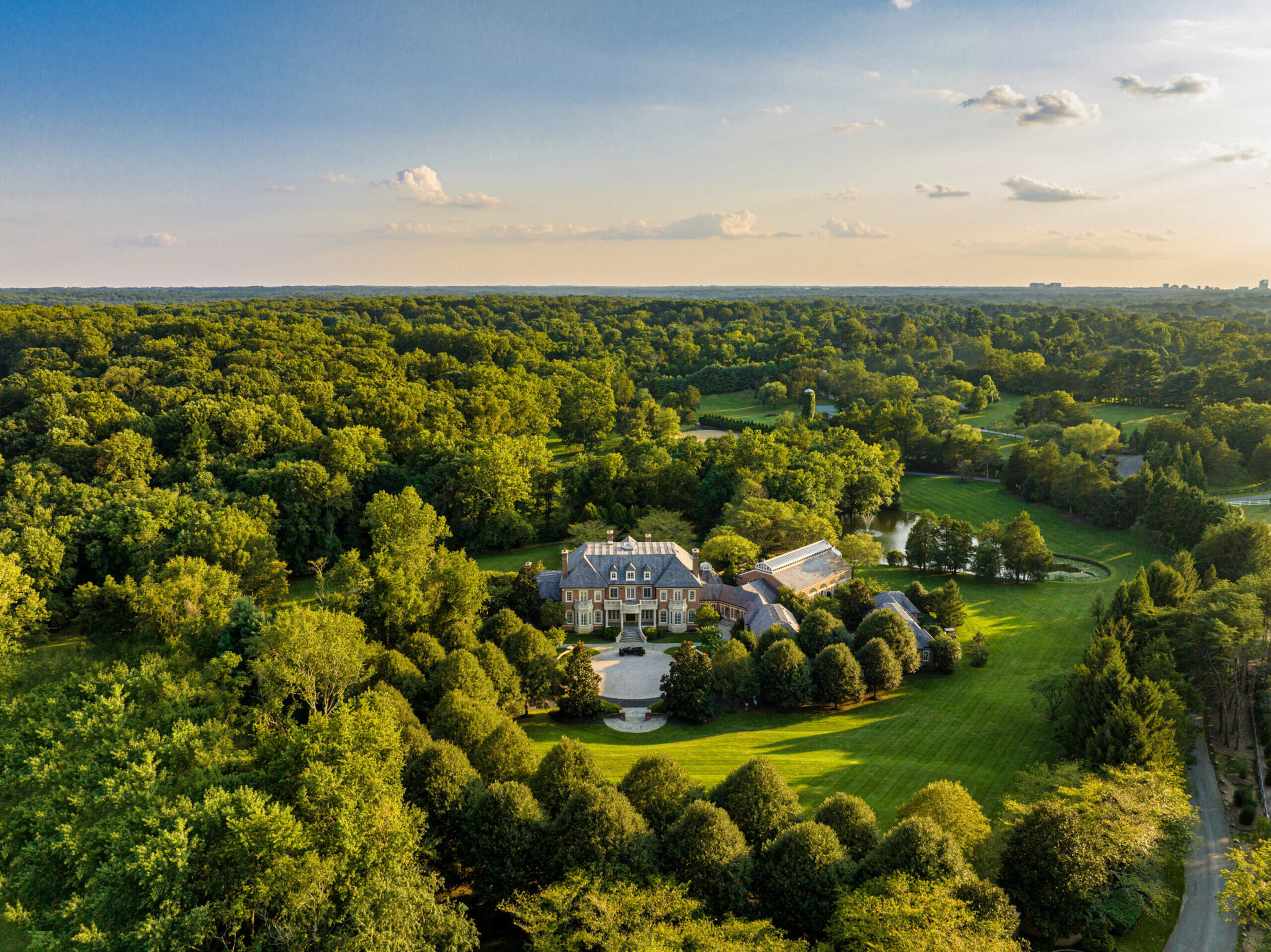 This sprawling Georgian estate takes the prize for the month’s most expensive residential sale. The gated mansion, also known as Wildersmoor House, spreads across 24,500 square feet on more than 17 acres. It comes with six bedrooms, seven bathrooms, and three half-baths, plus an elevator, 11 fireplaces, a reception hall, a solarium, a billiards room, a screening room, a indoor swimming pavilion, a fitness center, and a contained apartment. Also on the property: a quarter-acre lake, an equestrian facility, and enough parking for 12 vehicles.