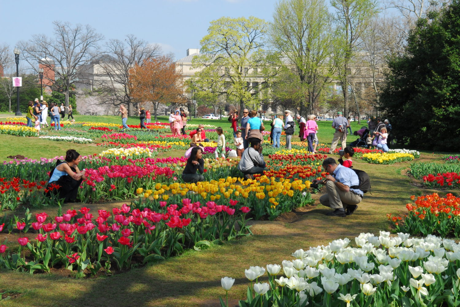 Bright yellow daffodils, purple hyacinth, and pink tulips have been blooming all throughout the DC area, and even more blooms are on the way as the city continues to wake up from its wintry slumber. Whether you join a docent for a tour or explore on your own, here are seven gardens—plus some residential neighborhoods—to stroll through this spring and summer: