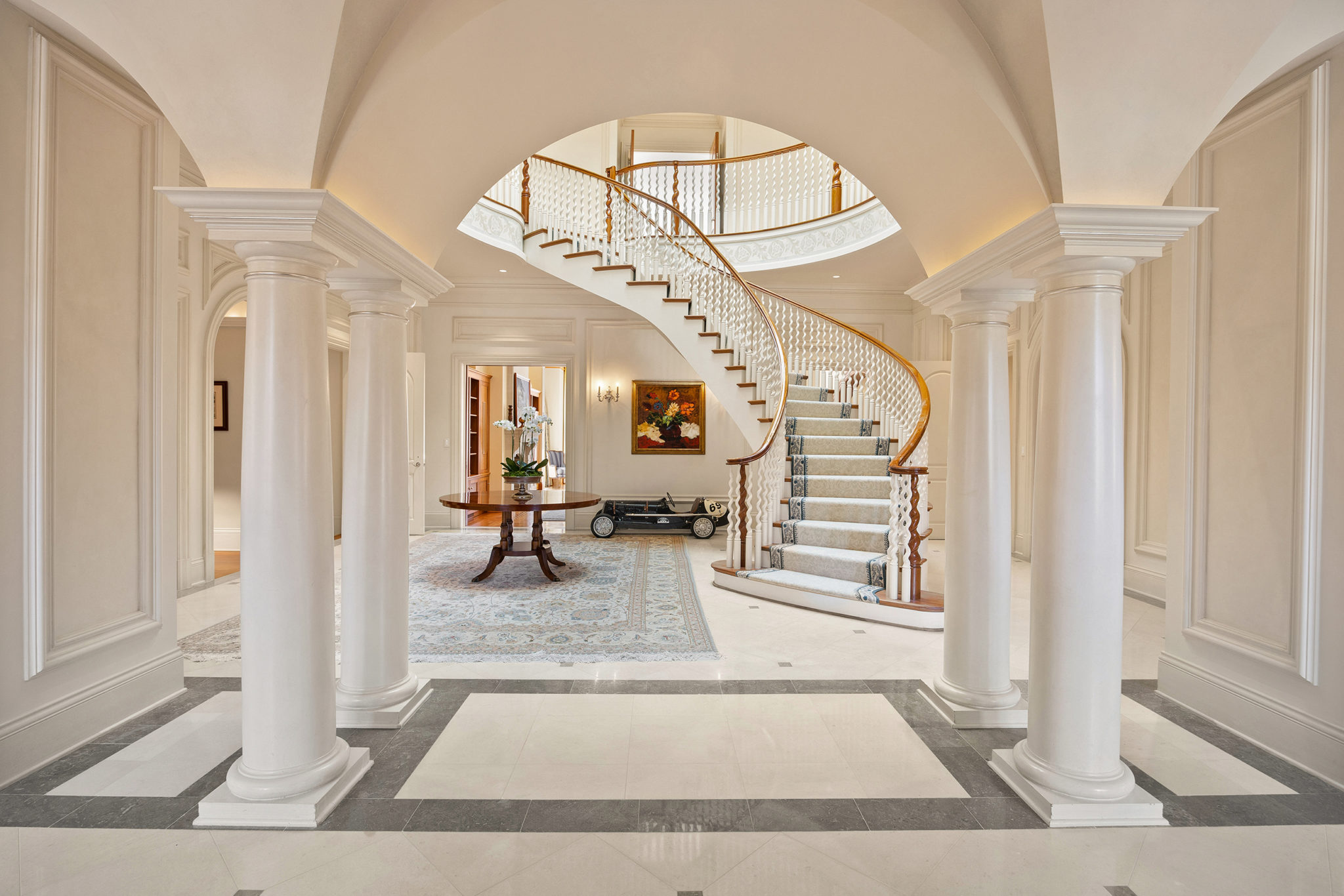 Bragging points: Seven bedrooms, six bathrooms, and two half bathrooms, with a chef’s kitchen, sunroom, den, screened porch, wet bar, mudroom, and au pair suite.