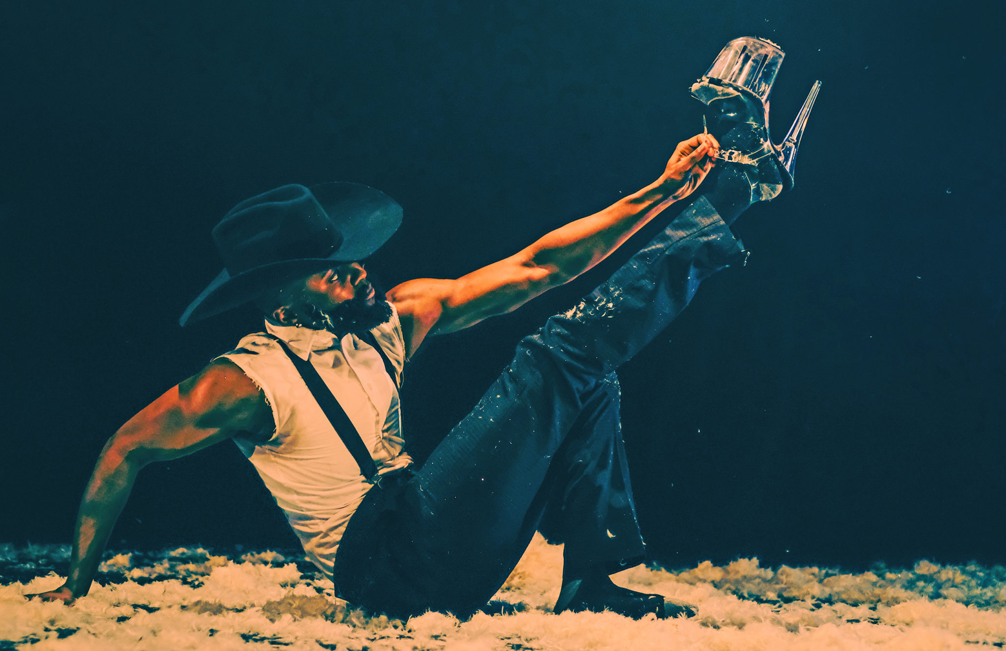 In February, DC drag artist King Molasses performed on one of the drag world’s most important stages: RuPaul’s Drag Race winner Sasha Velour’s NightGowns revue in New York City. Lip-synching in part to a monologue from Afrobeat pioneer Fela Kuti, Molasses put on a show radiating grief, tenderness, and pride, expressed through a jerky, swaggering striptease, all while wearing a giant fake beard, cowboy hat (eventually flung into the audience), and cowboy boots.