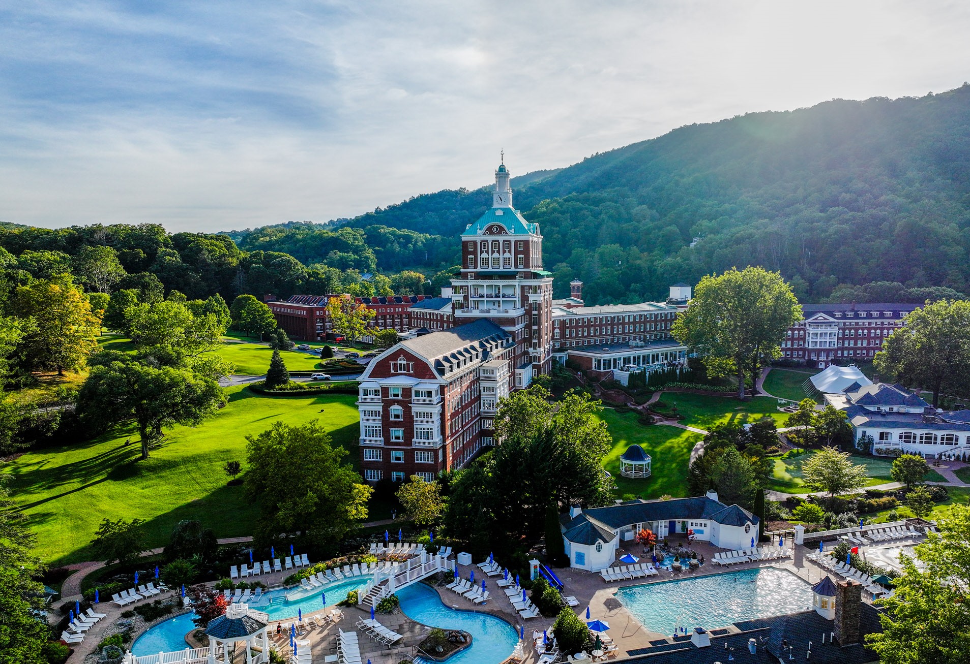 What’s special: This Allegheny Mountain resort has been welcoming vacationers and dignitaries for over 250 years. It recently completed a $150 million renovation to restore the historic character of the Great Hall, the guest rooms, and the bathhouses at Warm Springs Pools. Lush grounds and majestic mountains are the backdrop for the luxury resort’s two championship golf courses, a two-acre water park, a full-service spa, tennis, hiking trails, horseback riding, history tours, lawn games, zip lining, nightly movies at the cinema, and more. Food choices range from a fine dining room with dancing to a casual pub.