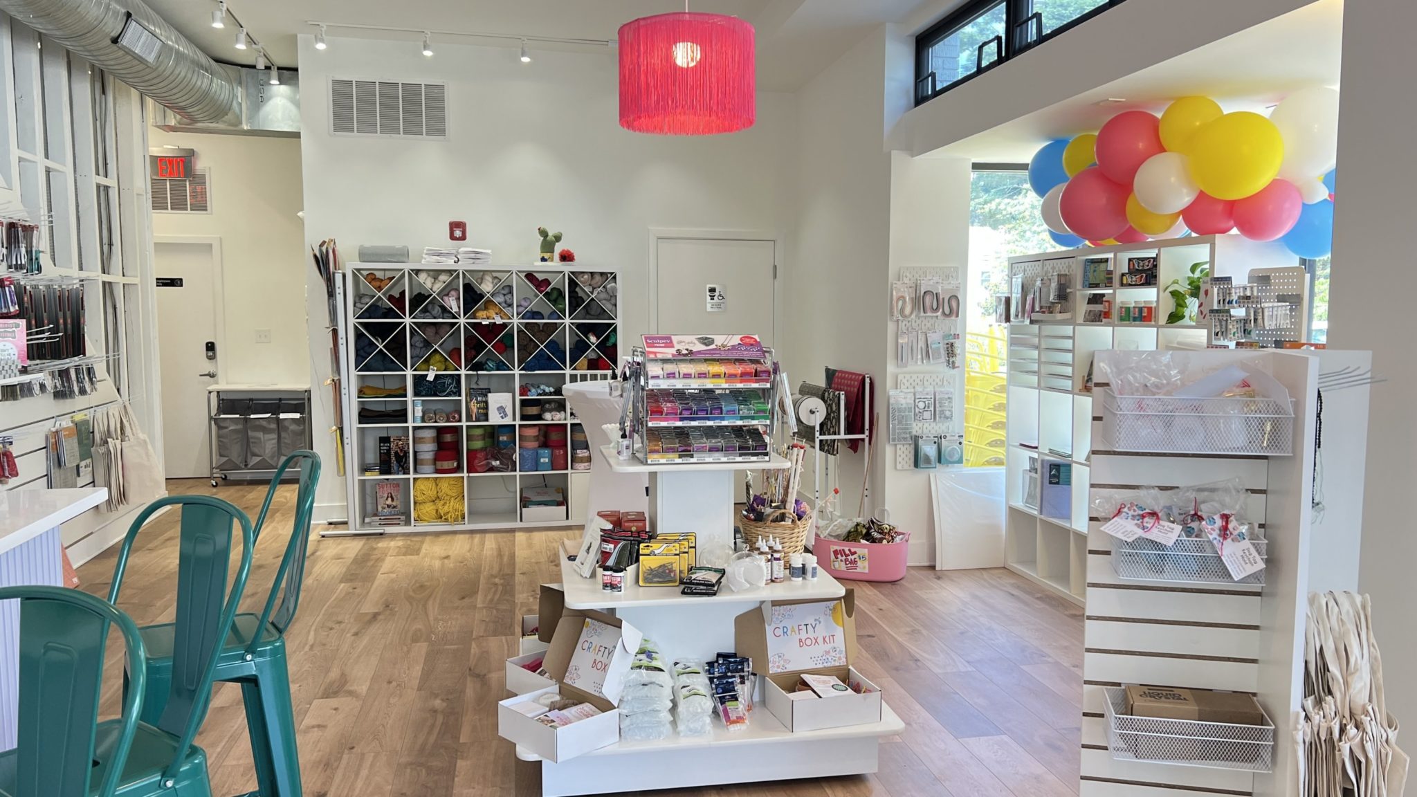 Upstairs, there’s a space that hosts private parties, crafting workshops, monthly sip-and-stitch happy hours, and kid-friendly lessons. This month, the schedule includes a yarn swap (July 7), a Bridgerton-themed soirée with scones, cocktails, and card-making (July 5), and a clay workshop with a local scientific illustrator/clay artist (July 10). But it’s also there to give folks room to settle in, work on their hobbies, and hang out.
