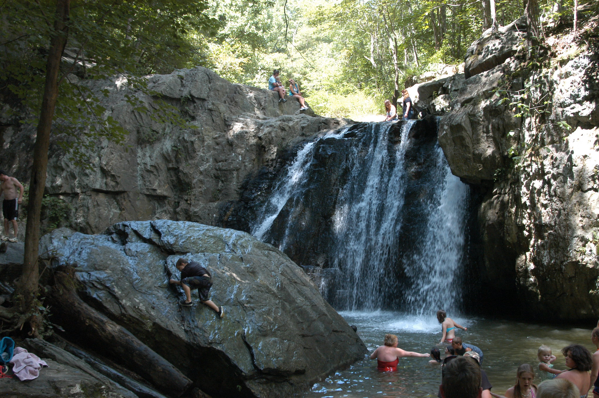 This swimming hole near Baltimore is so popular that you’ll need a reservation to visit on weekends and holidays. A half-mile walk along Falling Branch trail leads to a 17-foot-high waterfall and a catch pool for sitting, swimming, or standing beneath the cascade. Be careful if you decide to scramble up the rocky sides to view the waterfall from above.