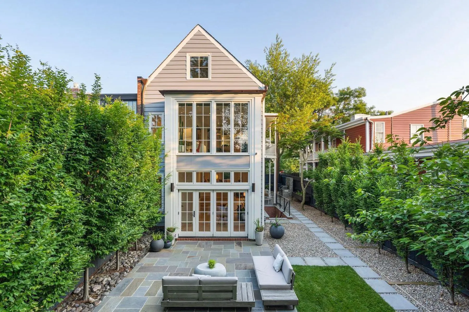 This 1896 Georgetown rowhouse was renovated in 2019 by DC-based StudioMB. Amenities include a modern white kitchen, floor-to-ceiling windows, ample outdoor entertaining space, and a primary bedroom featuring a private porch and spa-grade ensuite bathroom. On the lower level, find a one-bedroom apartment, complete with its own kitchen.