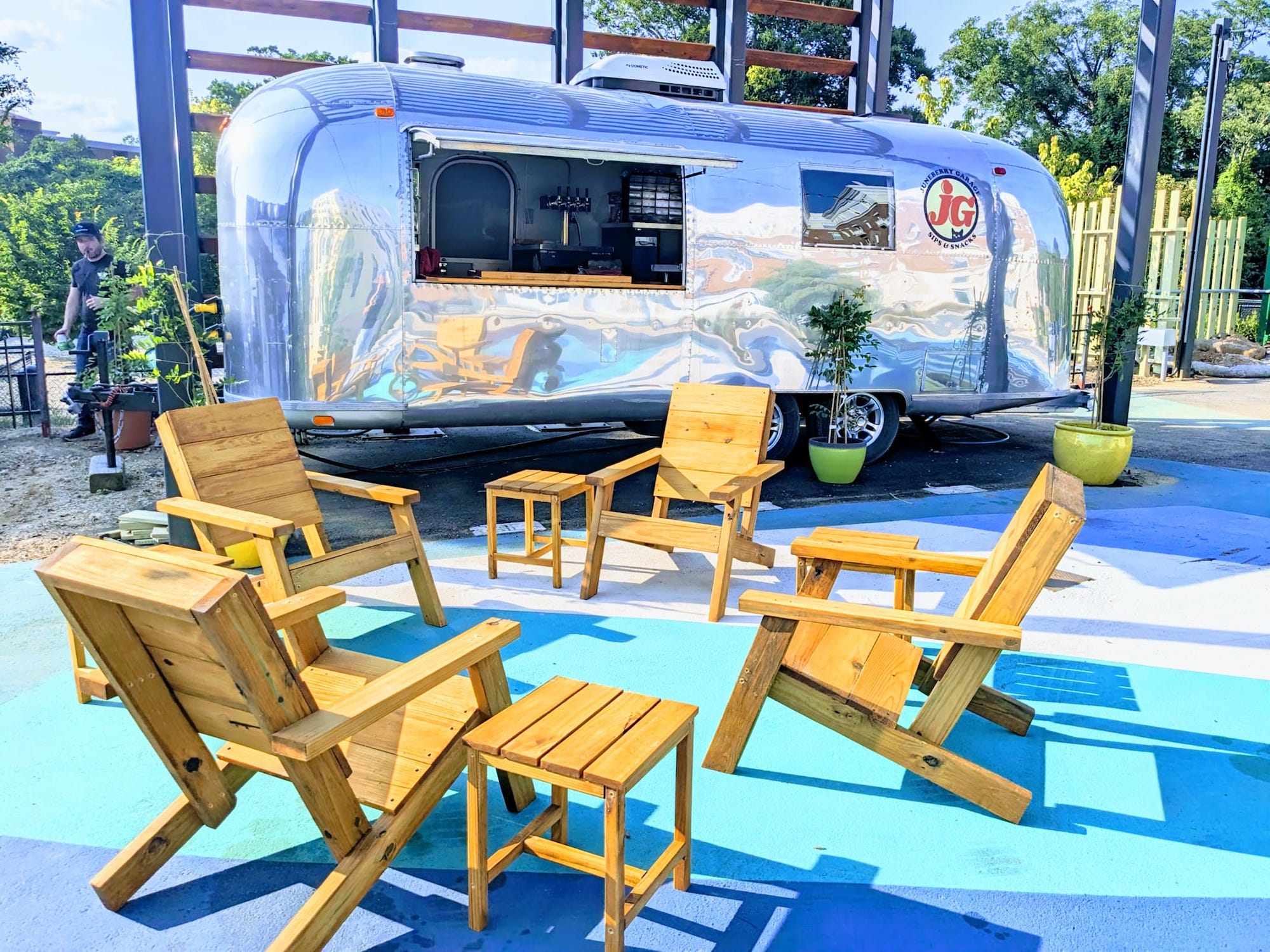 Saltzman, Powers, Allen, and Webb bought the former auto body shop in March, and set to work rehabbing it. But as the work dragged on, they were eager to get some sort of ad hoc business open in the space. That’s how they settled on the Airstream as a stopgap until the garage itself opens in mid-2025.